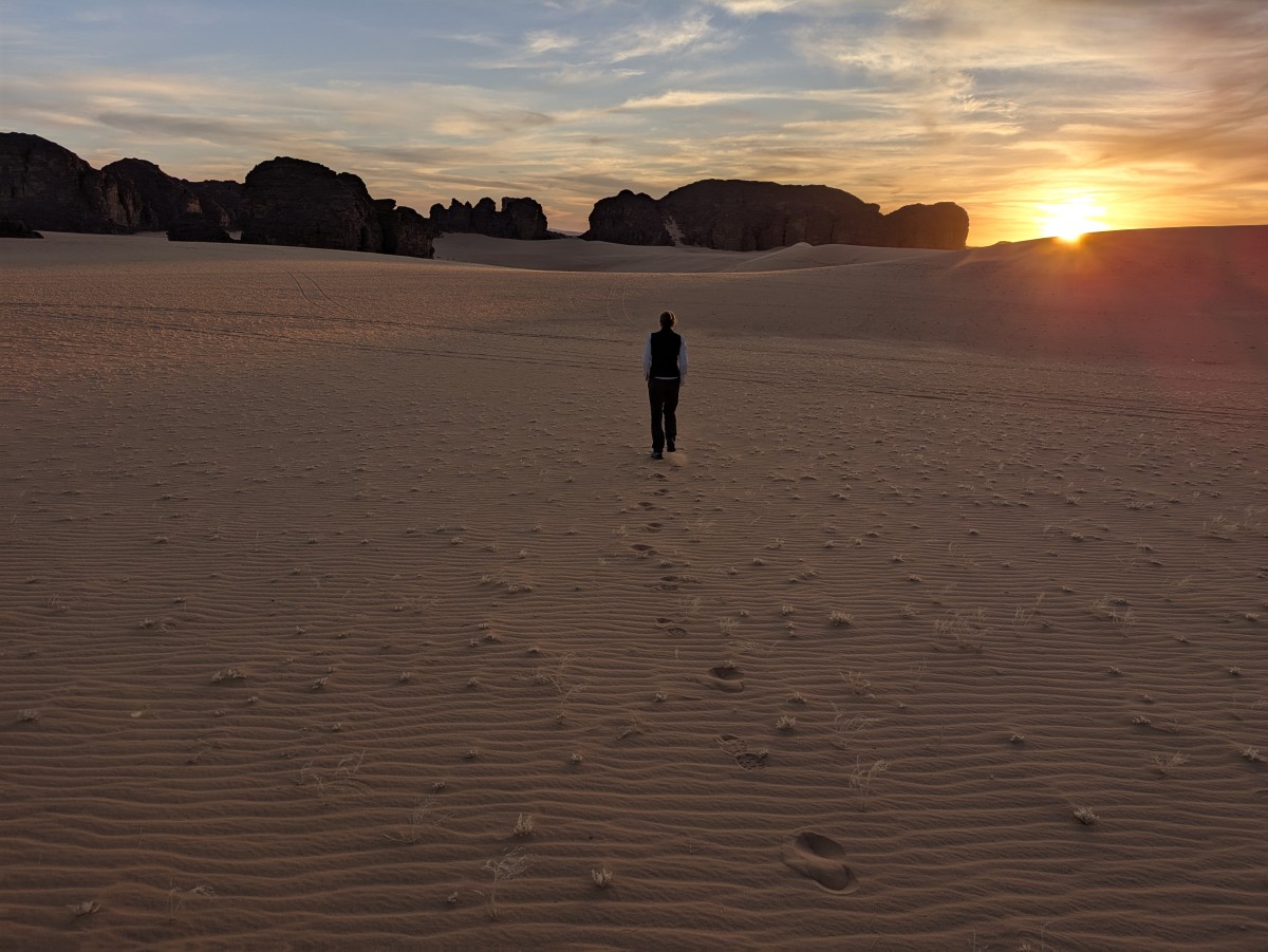 ...und nutzen den Sonnenuntergang zu einem Spaziergang in der Wüste.
