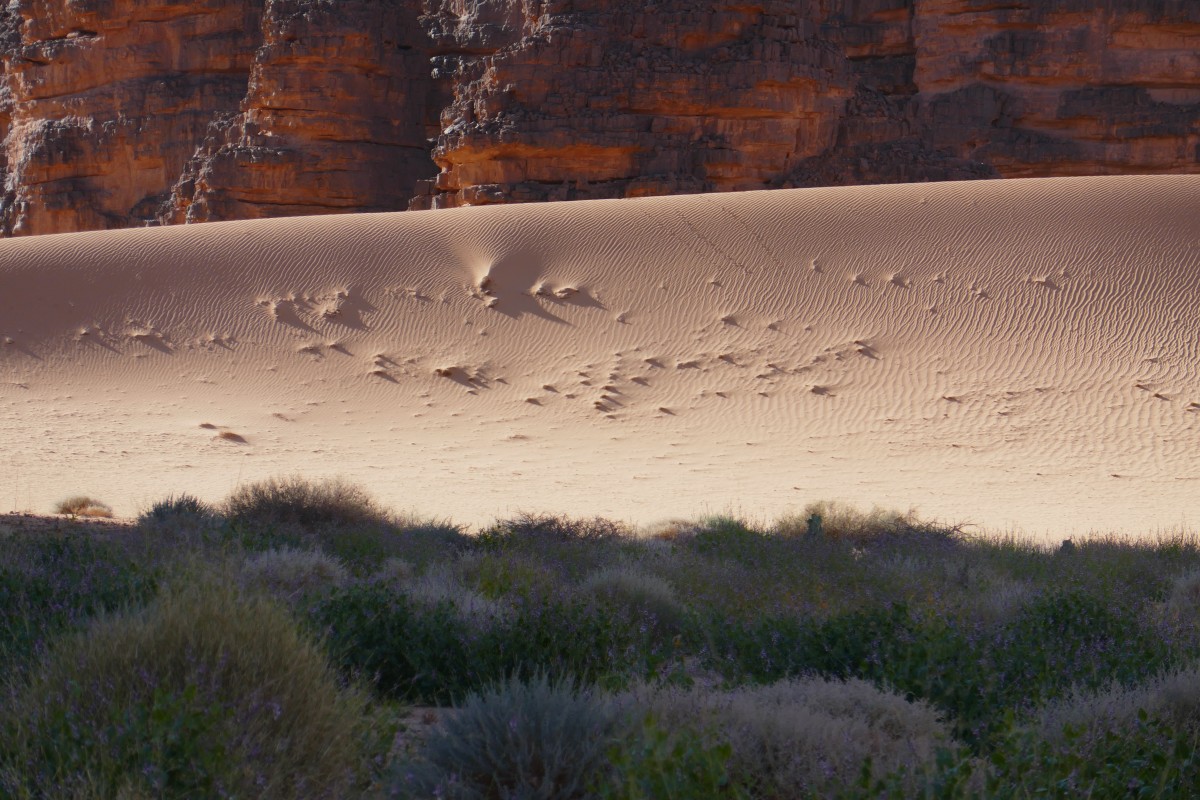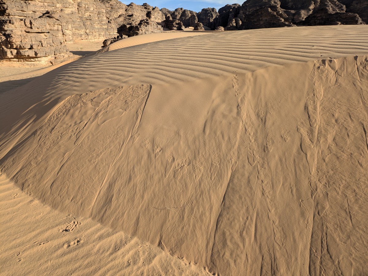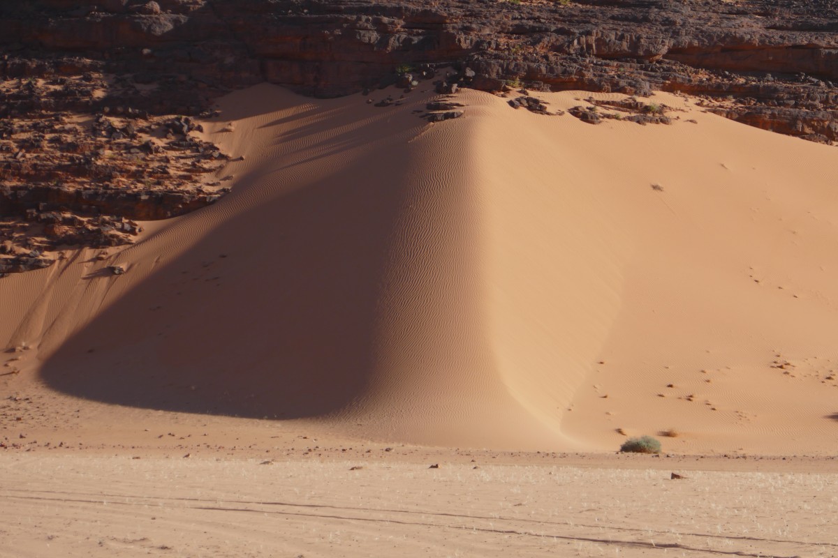 Am nächsten Tag kann ich fließenden Sand bewundern, der langsam eine Düne abträgt.