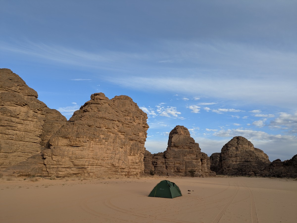 Unser heutiger Lagerplatz liegt in einem Amphtheater aus Felsen auf einer beinahe ebenen Fläche.