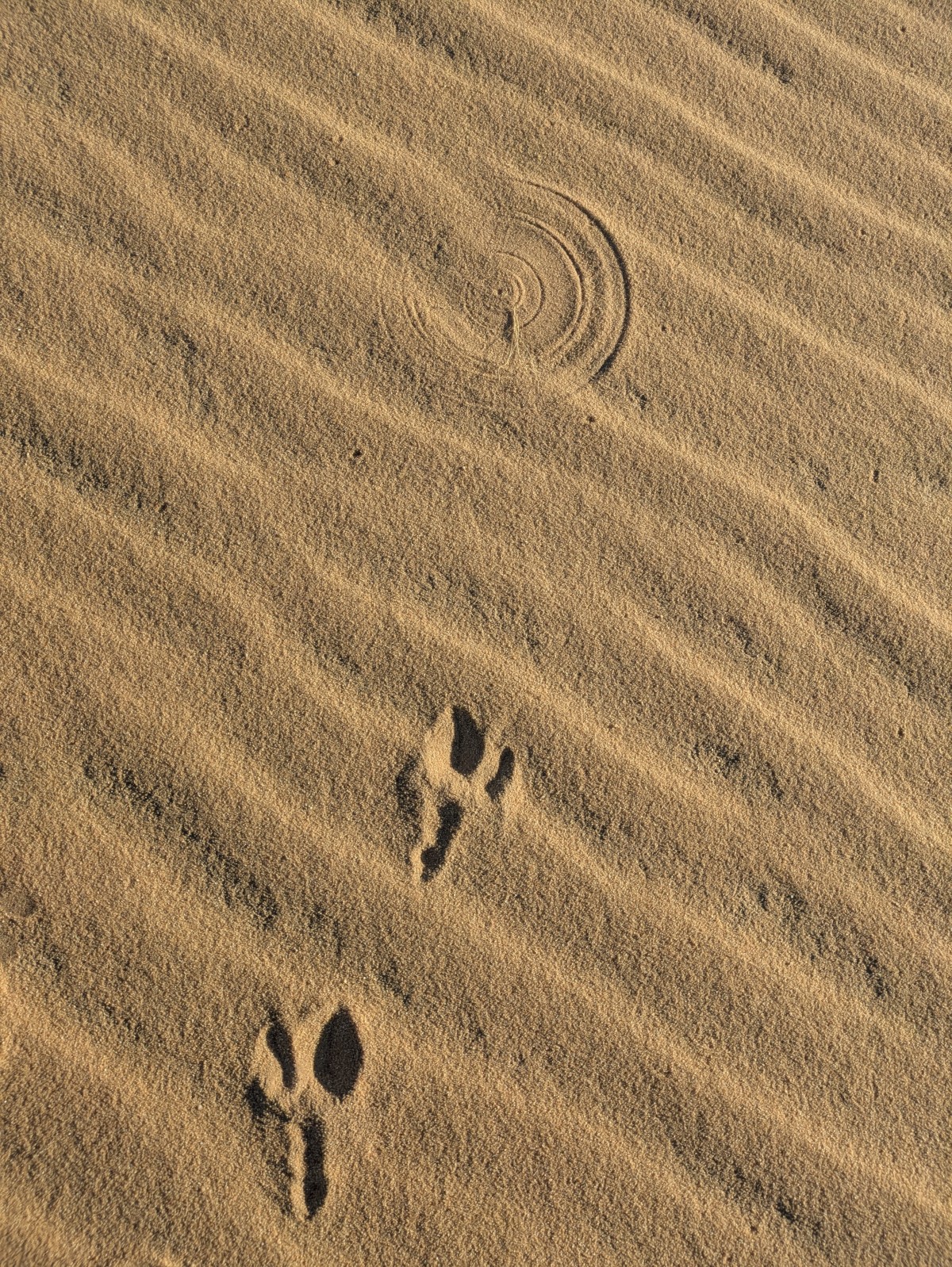 Immer wieder sind im Sand konzentrische Kreise zu finden - erzeugt durch Halme, die vom Wind in alle Richtungen