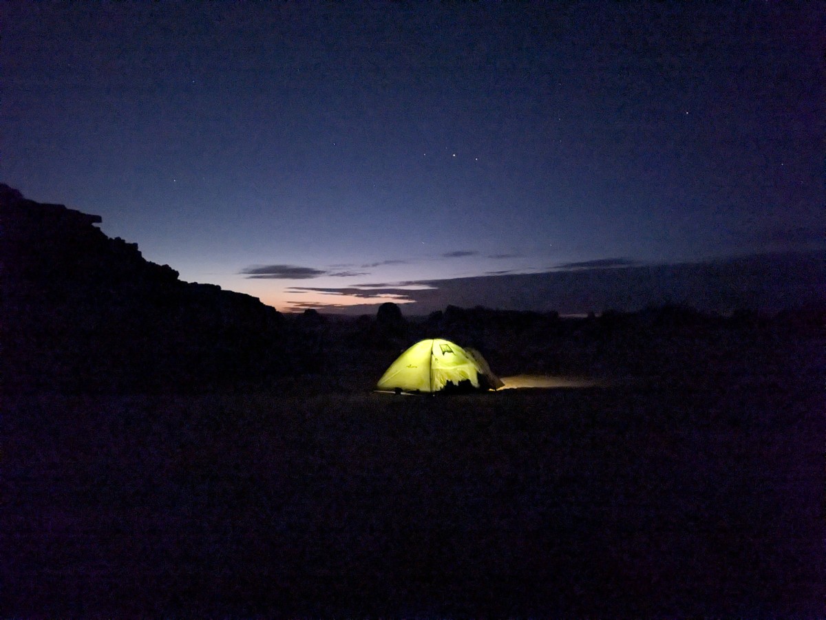Des nachts ist der Lagerplatz totenstill und wirklich dunkel. Umso besser kann man die Milchstraße bewundern, die sich