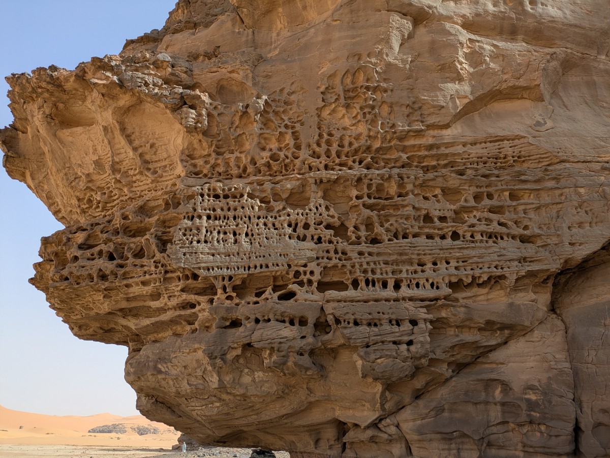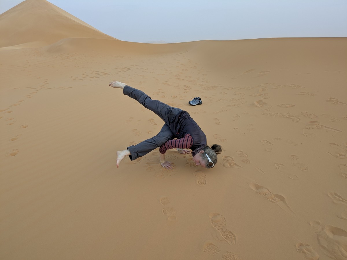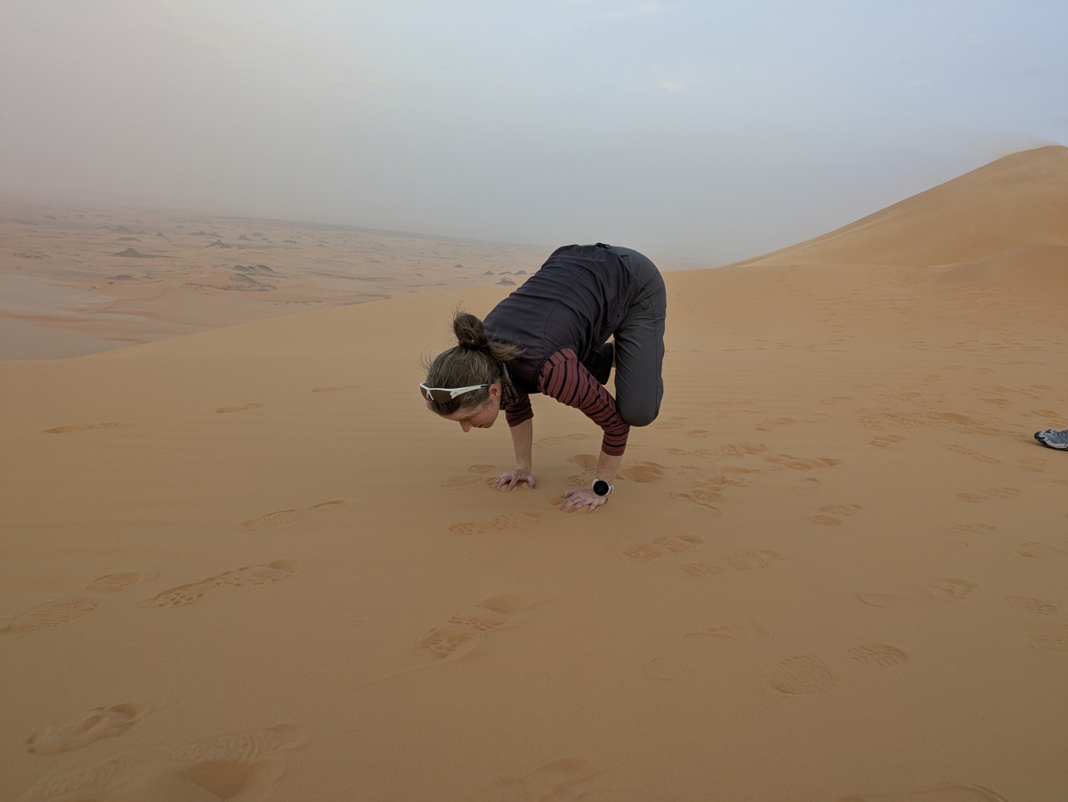 Immer wieder bläst es uns Sand ins Gesicht, auf die Teller und insbesondere in Tassen und auf Brotbeläge. Unser Guide Martin,
