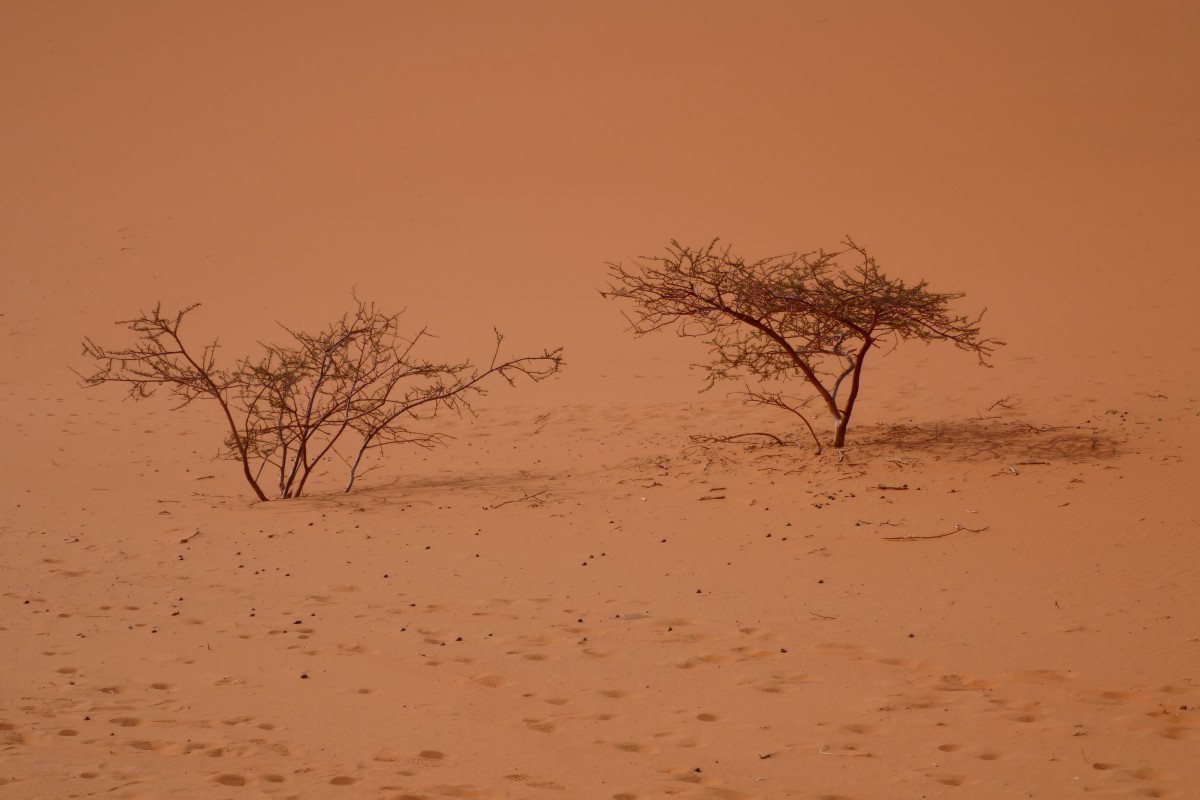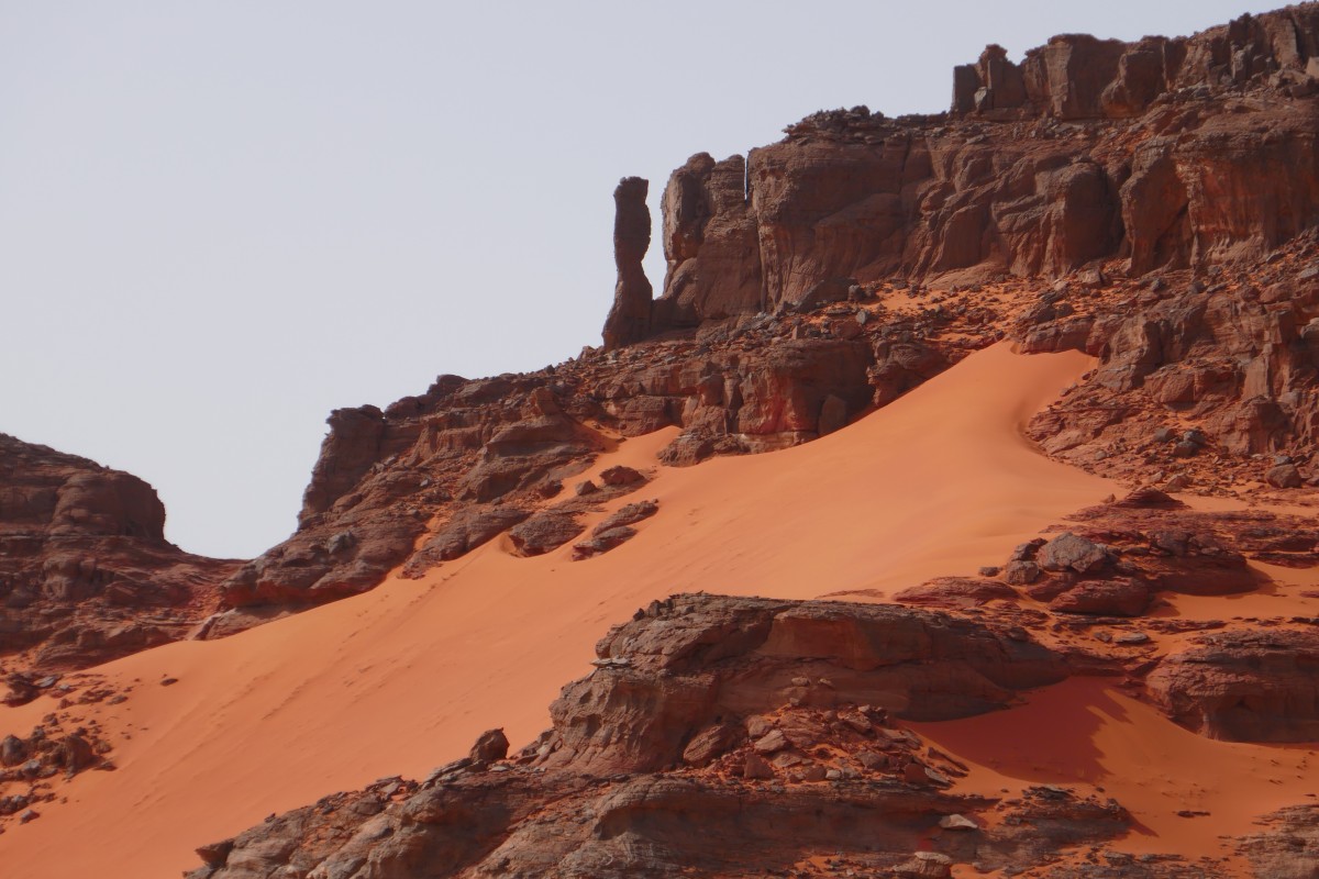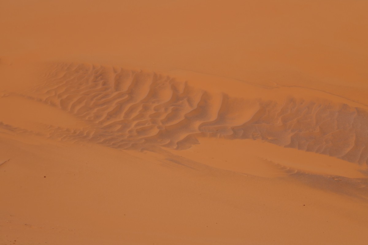 Beinahe wirkt es so, als hätte der Wind den orangefarbenen Anstrich der Dünen an einigen Stellen heruntergewischt, und es