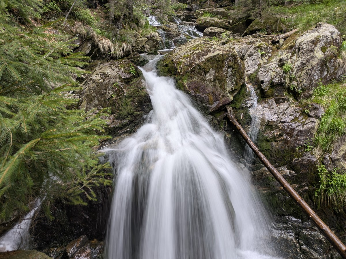 Für den letzten Tag im Woid lassen unsere Beine keine weiteren Großtaten mehr zu. Wir laufen zu den Riesloch-Wasserfällen hinauf und
