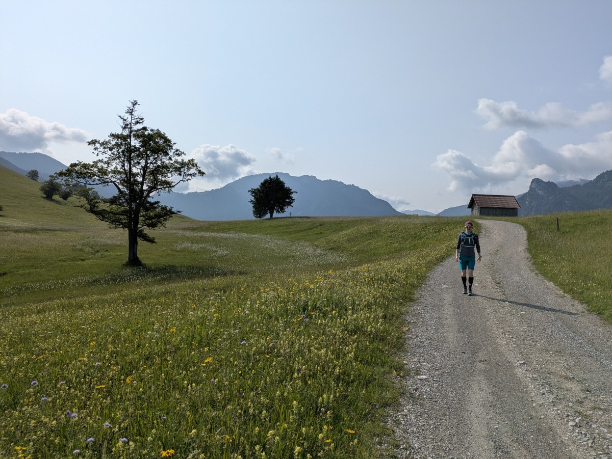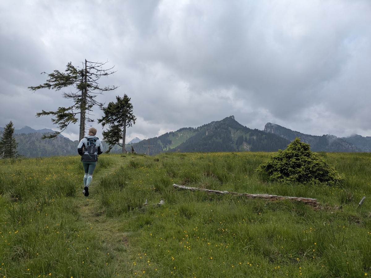 Mai als willkommenen Anlaß für den ersten Berglauf der Saison. Von Bichl aus geht es in idyllischer Landschaft entlang eines Baches den Wald zum