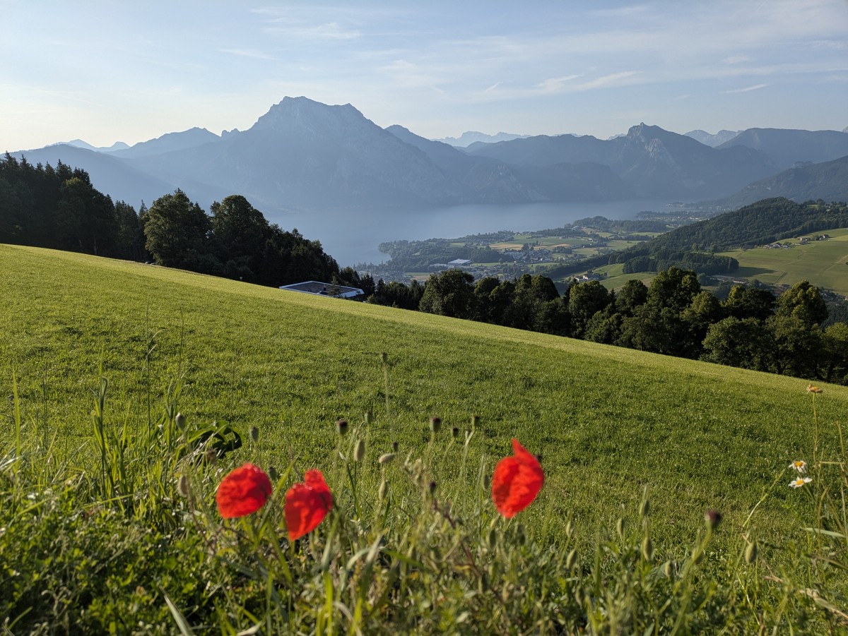 Zwei Tage später laufen wir von der Unterkunft in Altmüster des morgens unsere Pflichtrunde auf den Gmundner Berg hinauf. Wenn nur