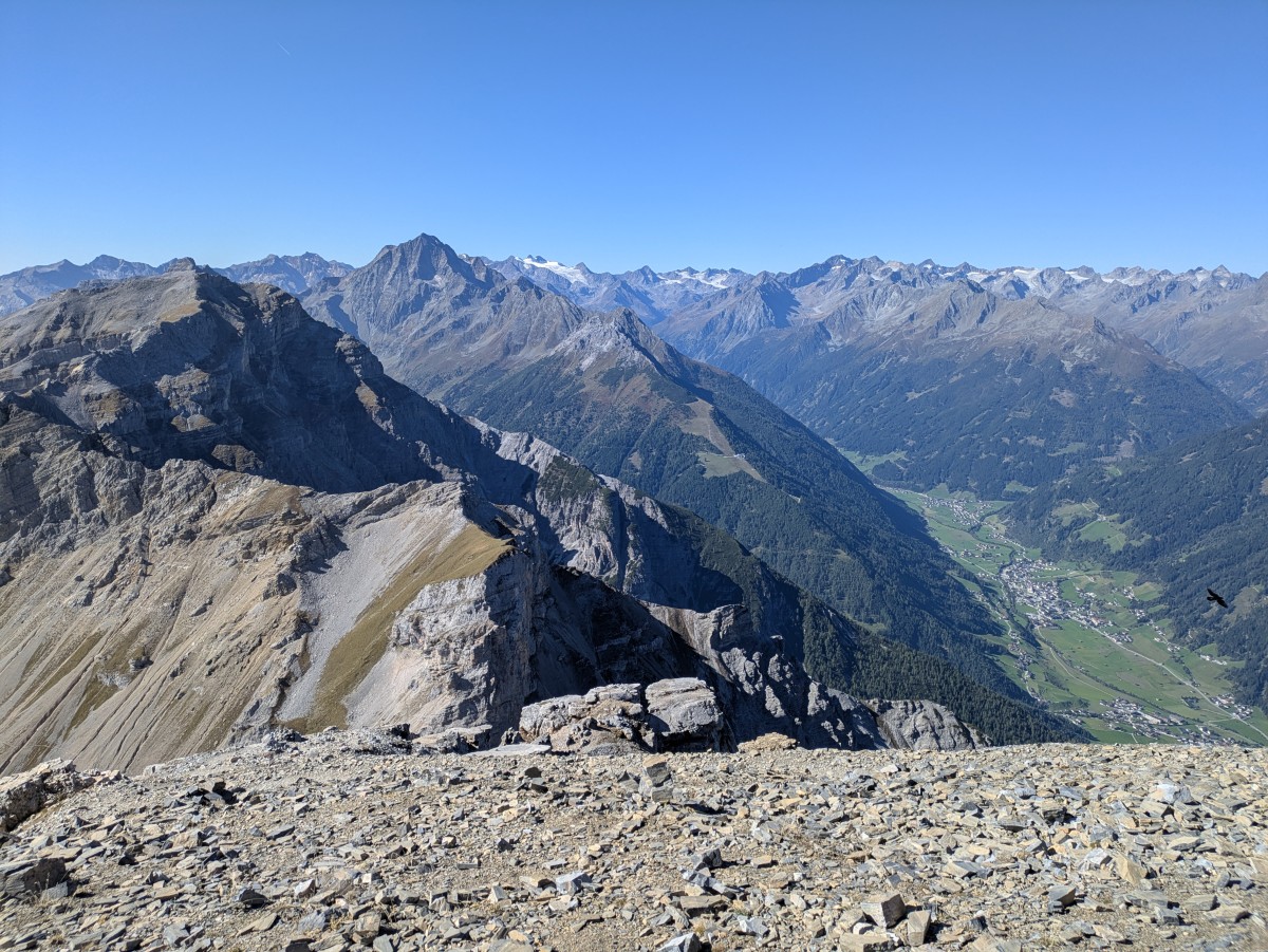 wirklich unangenehm starke Wind hält mich jedoch davon ab, diesen Gipfel auch noch mitzunehmen - ich beschließe, ins Fradertal