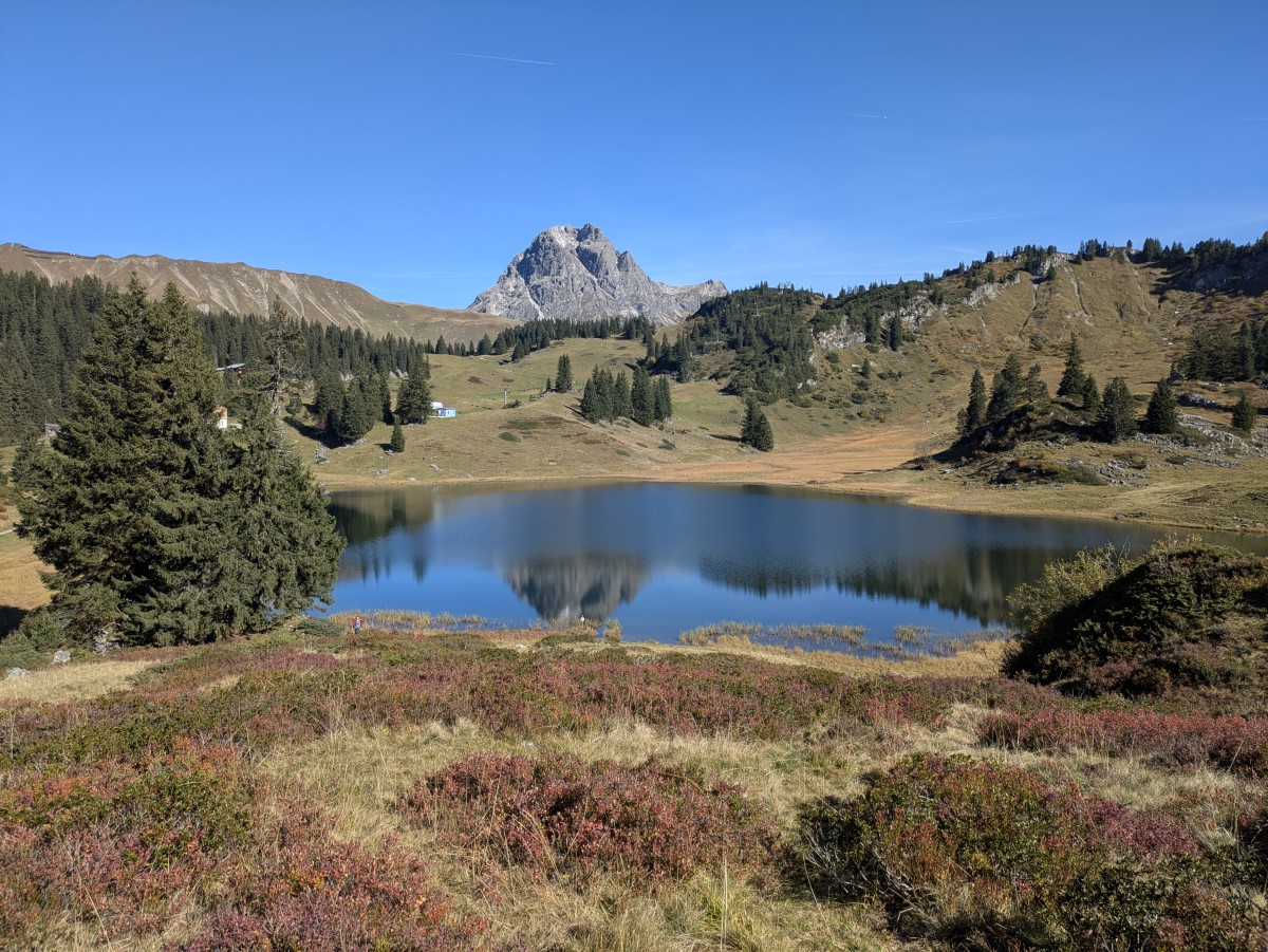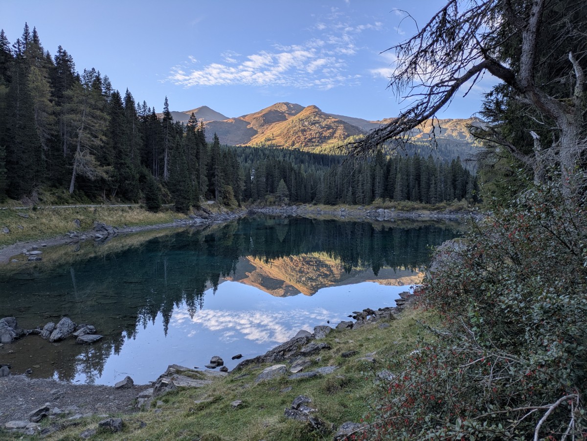 ruhigen Morgenstunde klar vor uns und spiegelt die Gipfel, die wir gut aus dem Winter kennen.