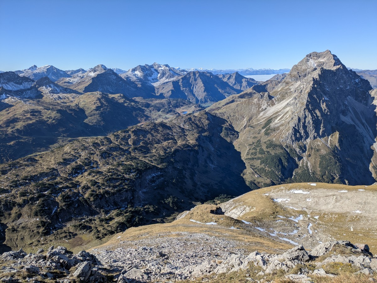 Zwei Stunden nimmt uns der schöne Anstieg in der Vormittagssonne in Anspruch, ehe wir ein wahrlich grandioses Panorama erleben: