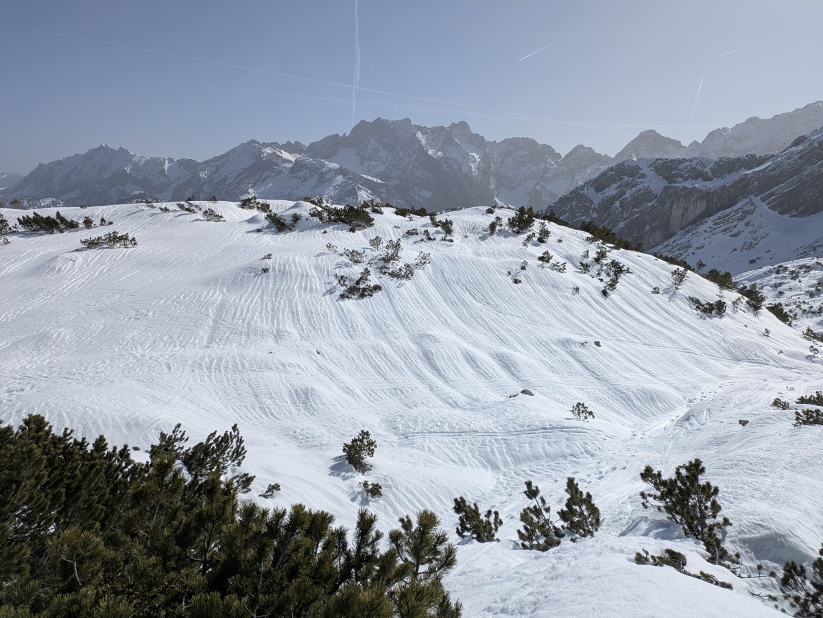 Auch die Seefelder Pisten eignen sich zu netten Touren; hier am Härmelekopf auf dem Weg nach Praxmar.