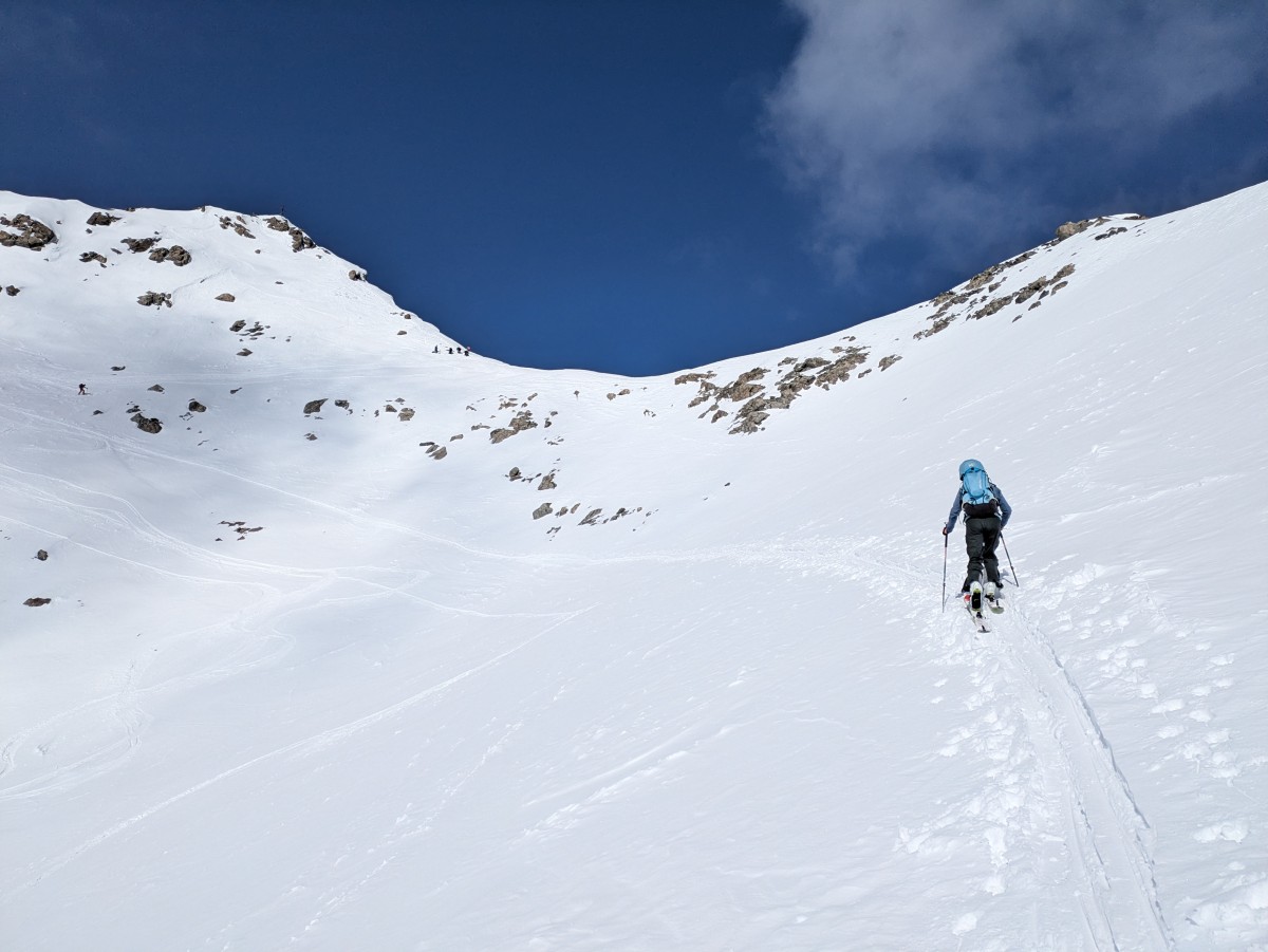 Bald schon liegt das Ziel im Blick - das Hinterjöchle ist über den letzten etwas steileren Hang zu erreichen.