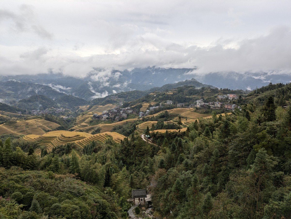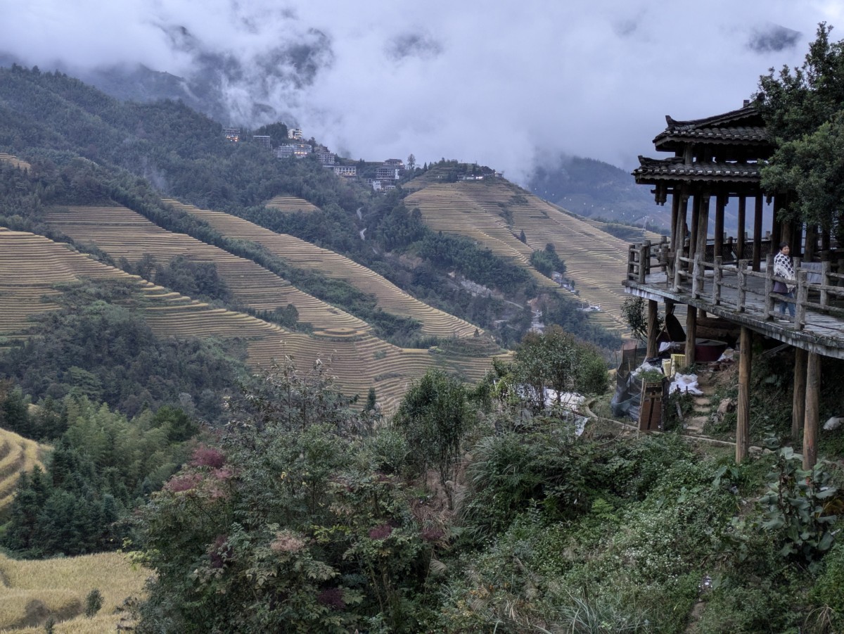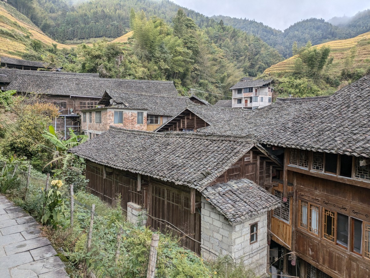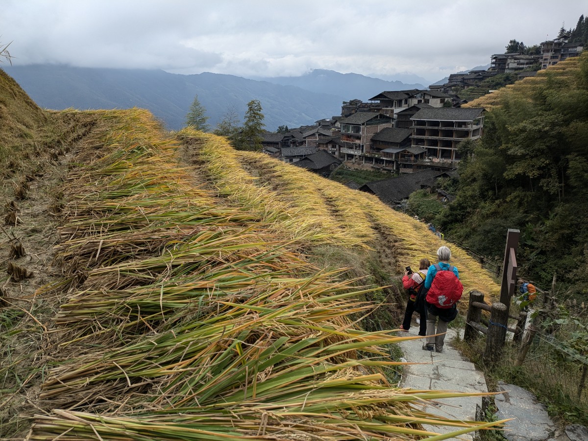 Im feuchten Spätnachmittag kommen wir in Longjie an. Nach einer abenteuerlichen Fahrt in einem Kleinbus gehen wir die letzten