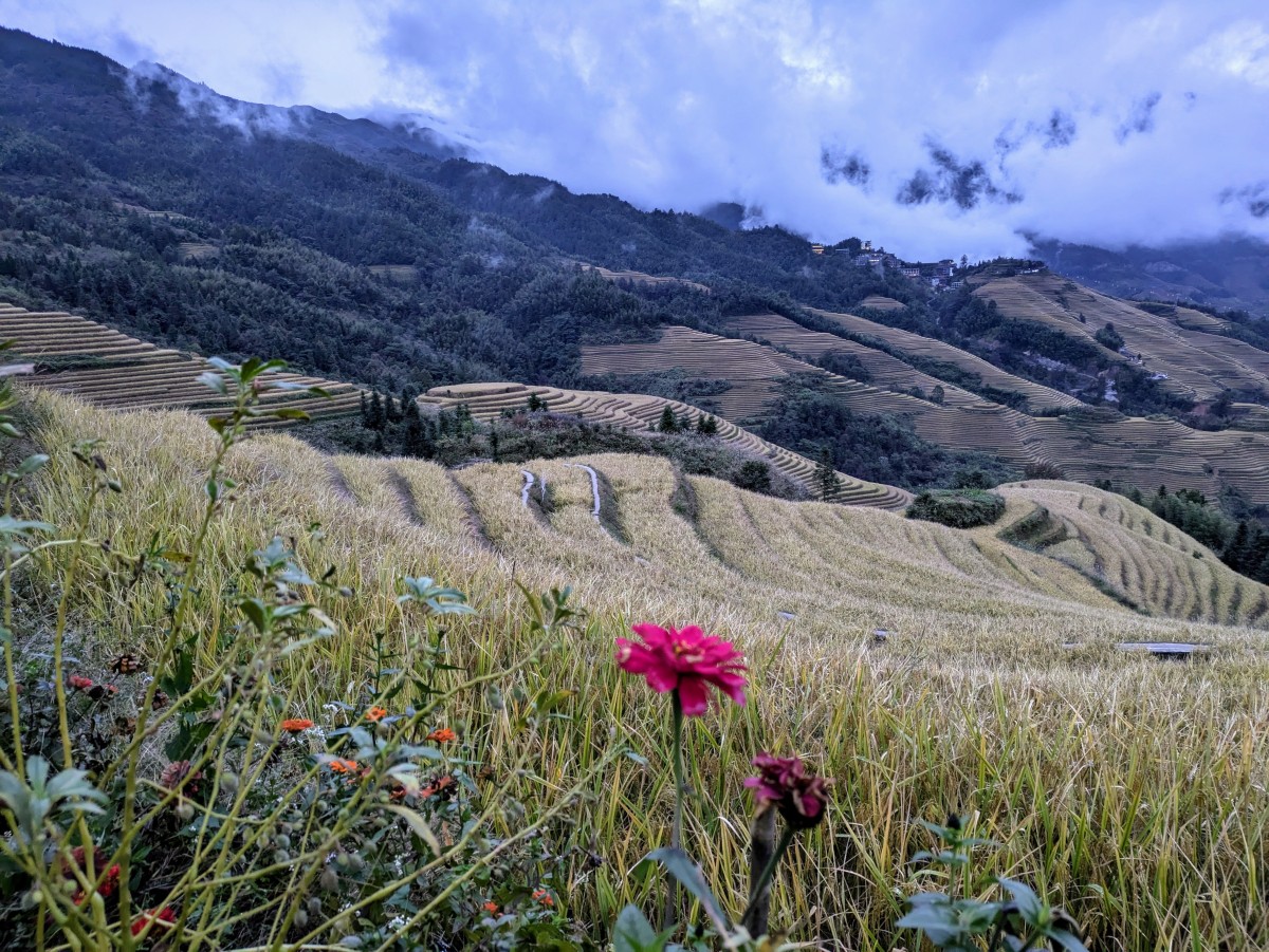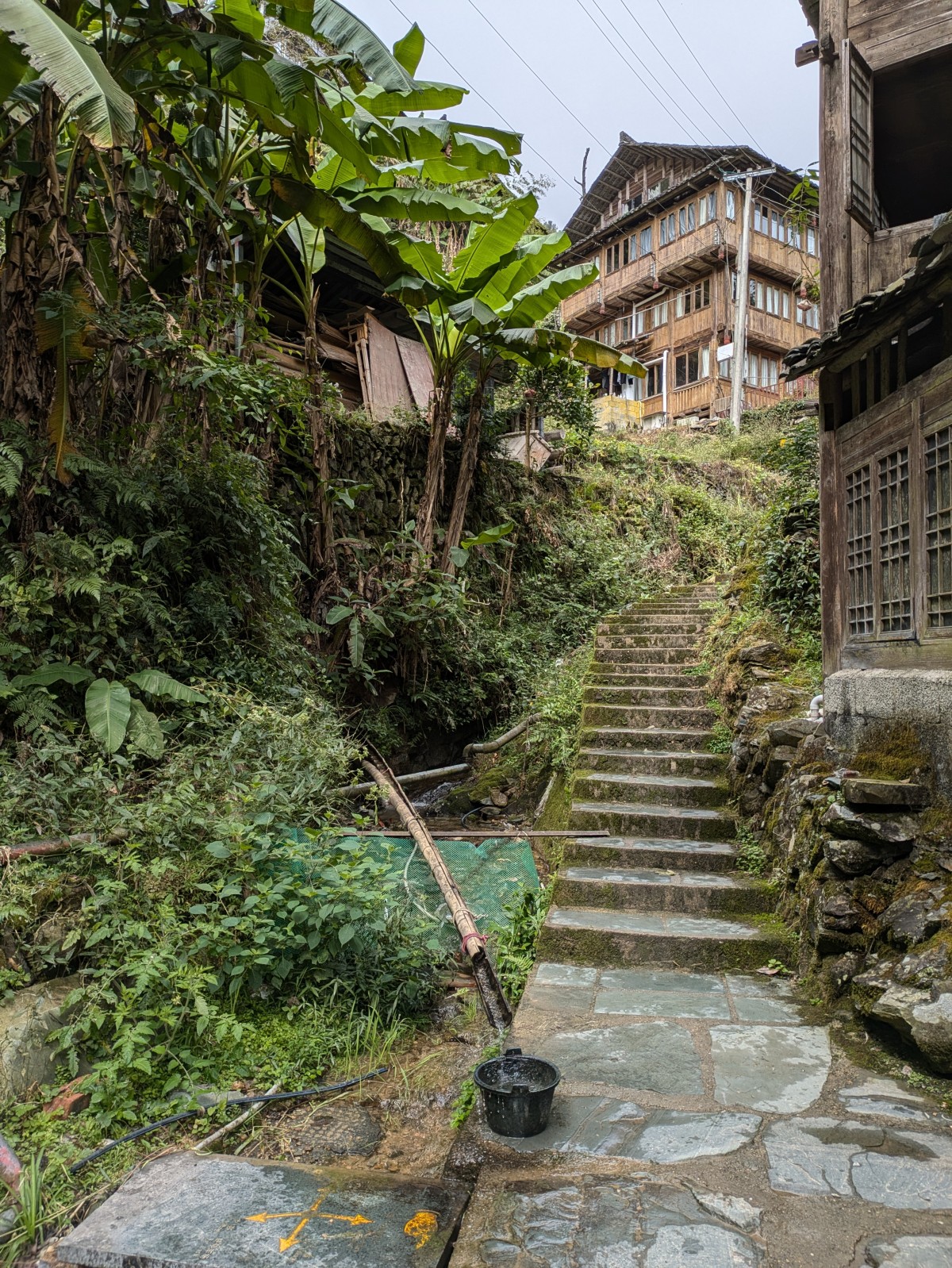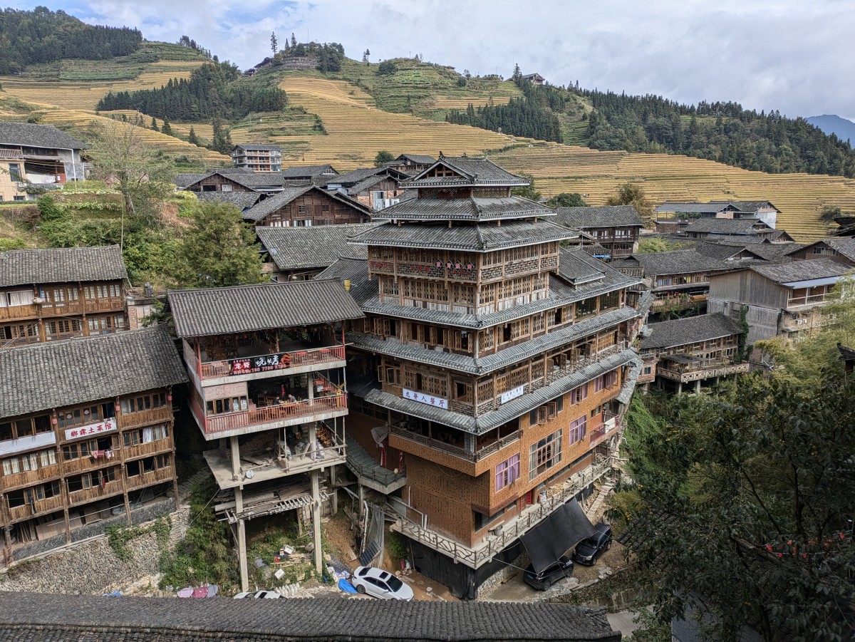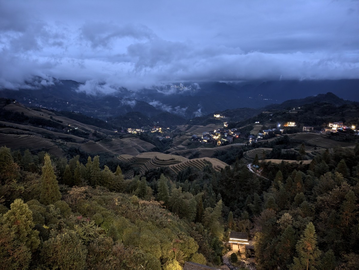 Im feuchten Spätnachmittag kommen wir in Longjie an. Nach einer abenteuerlichen Fahrt in einem Kleinbus gehen wir die letzten