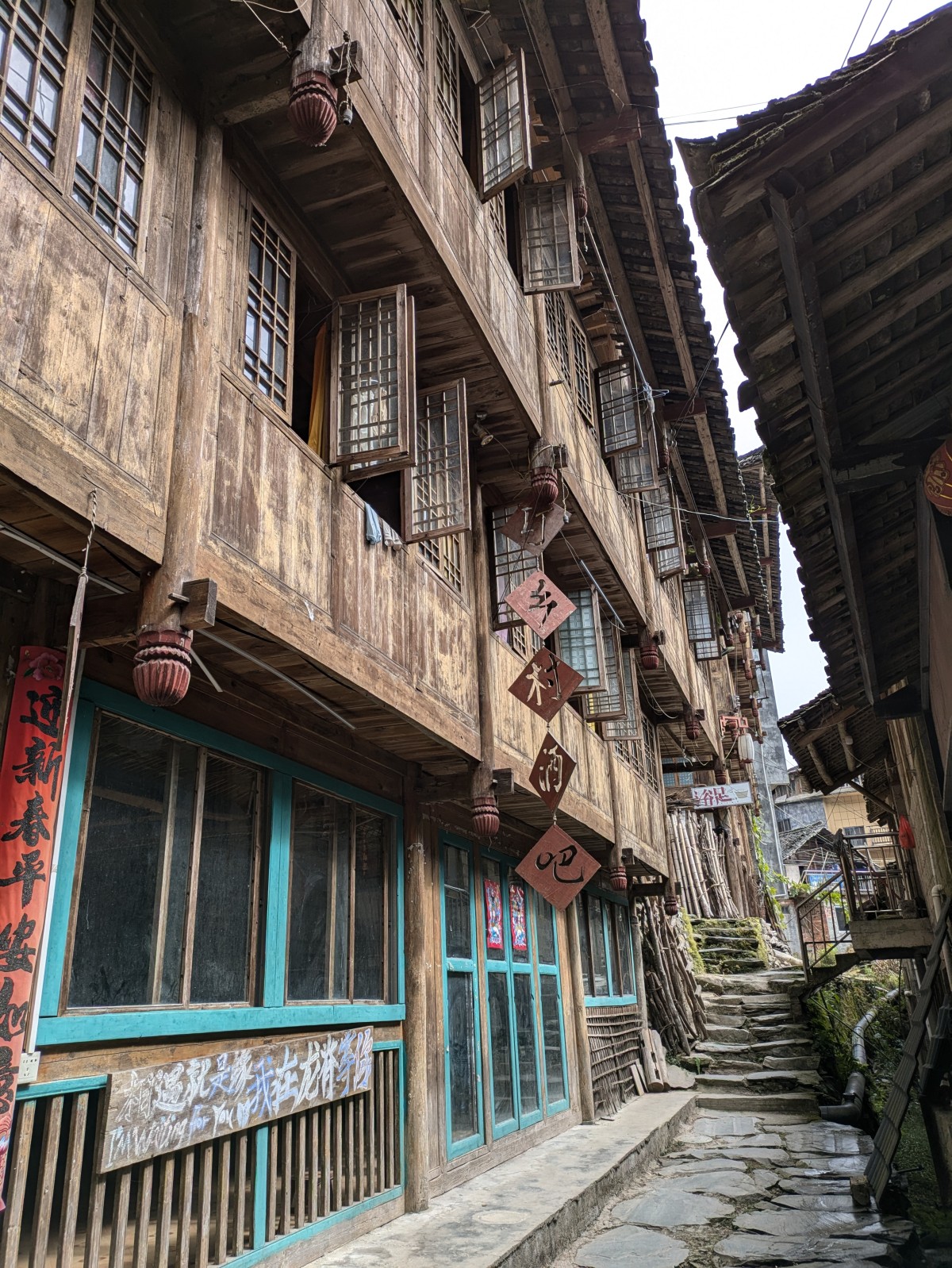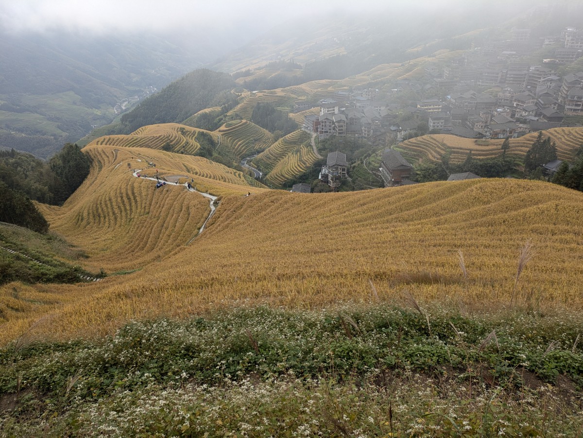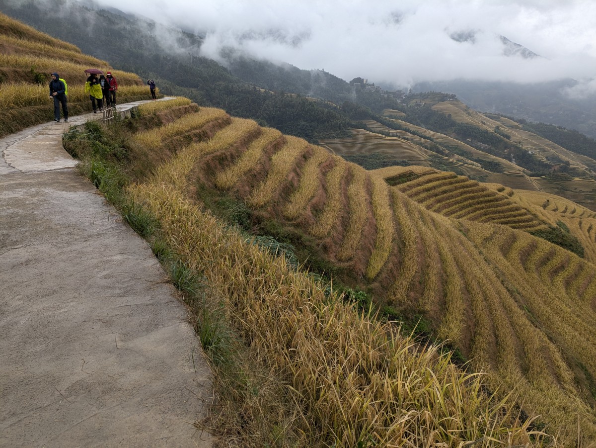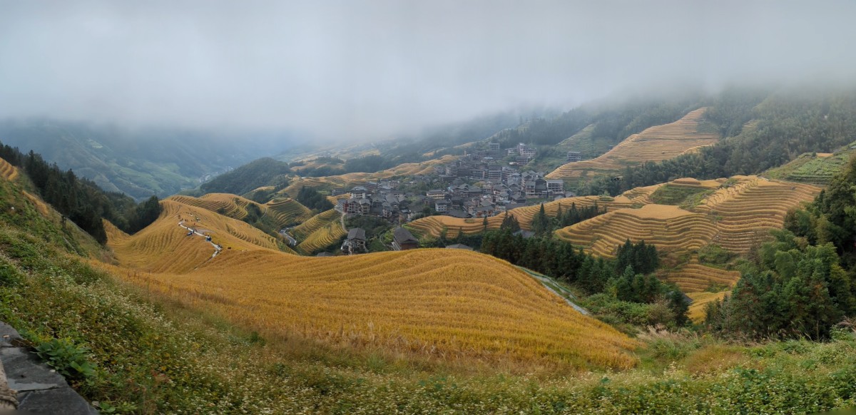 Im feuchten Spätnachmittag kommen wir in Longjie an. Nach einer abenteuerlichen Fahrt in einem Kleinbus gehen wir die letzten