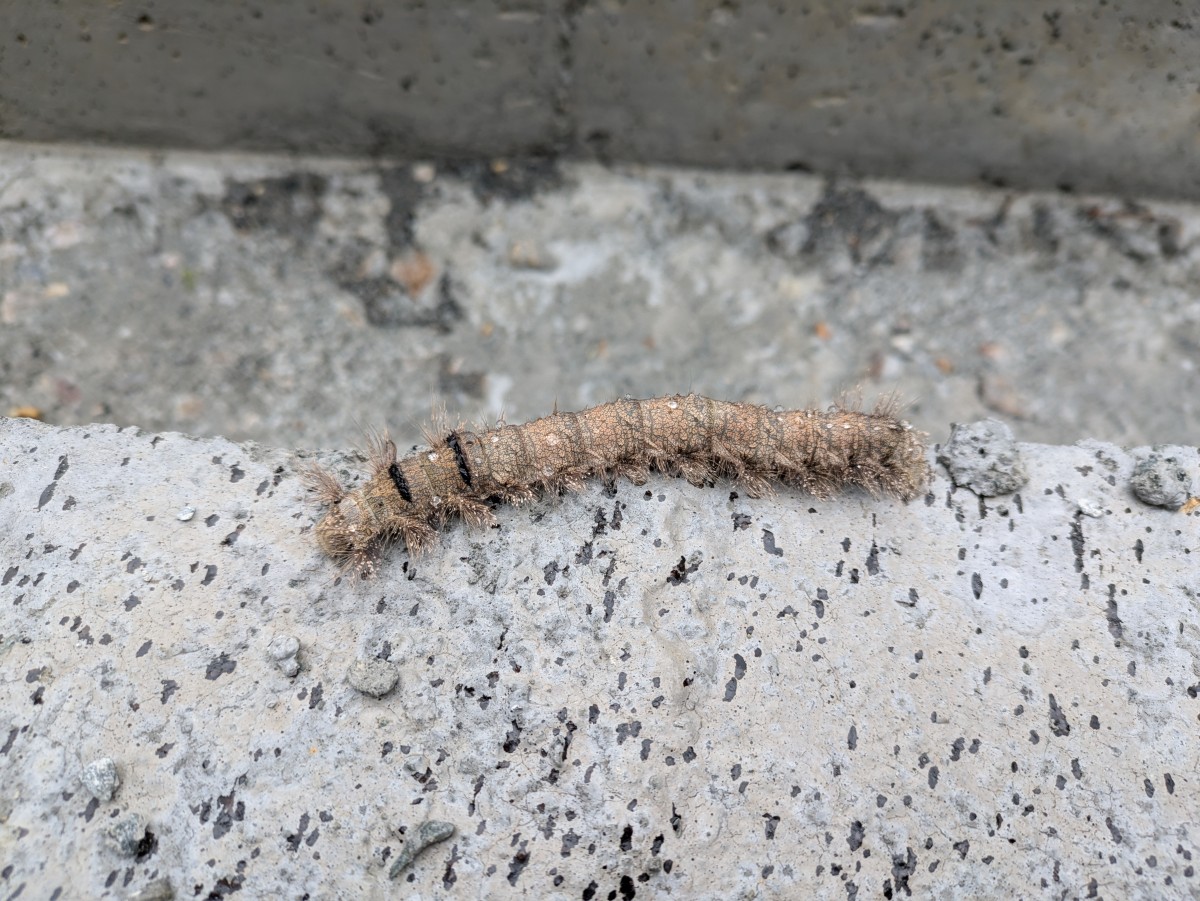Ein paar Schritte weiter bewegt sich eine interessante Raupe.