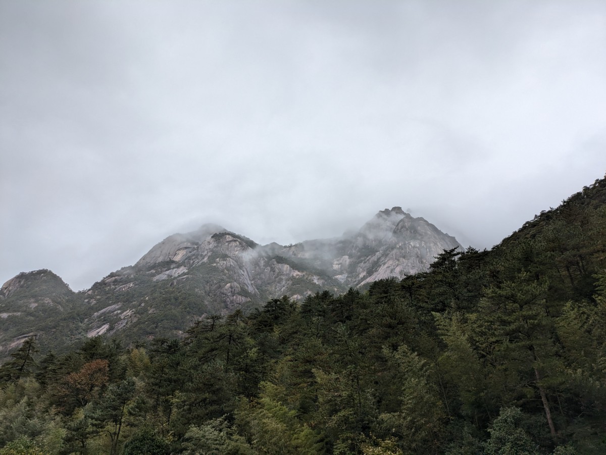 mache ich noch eine Aufnahme der Vorgipfel des Berges - mehr werden wir vom Huang Shan nicht mehr zu sehen bekommen.