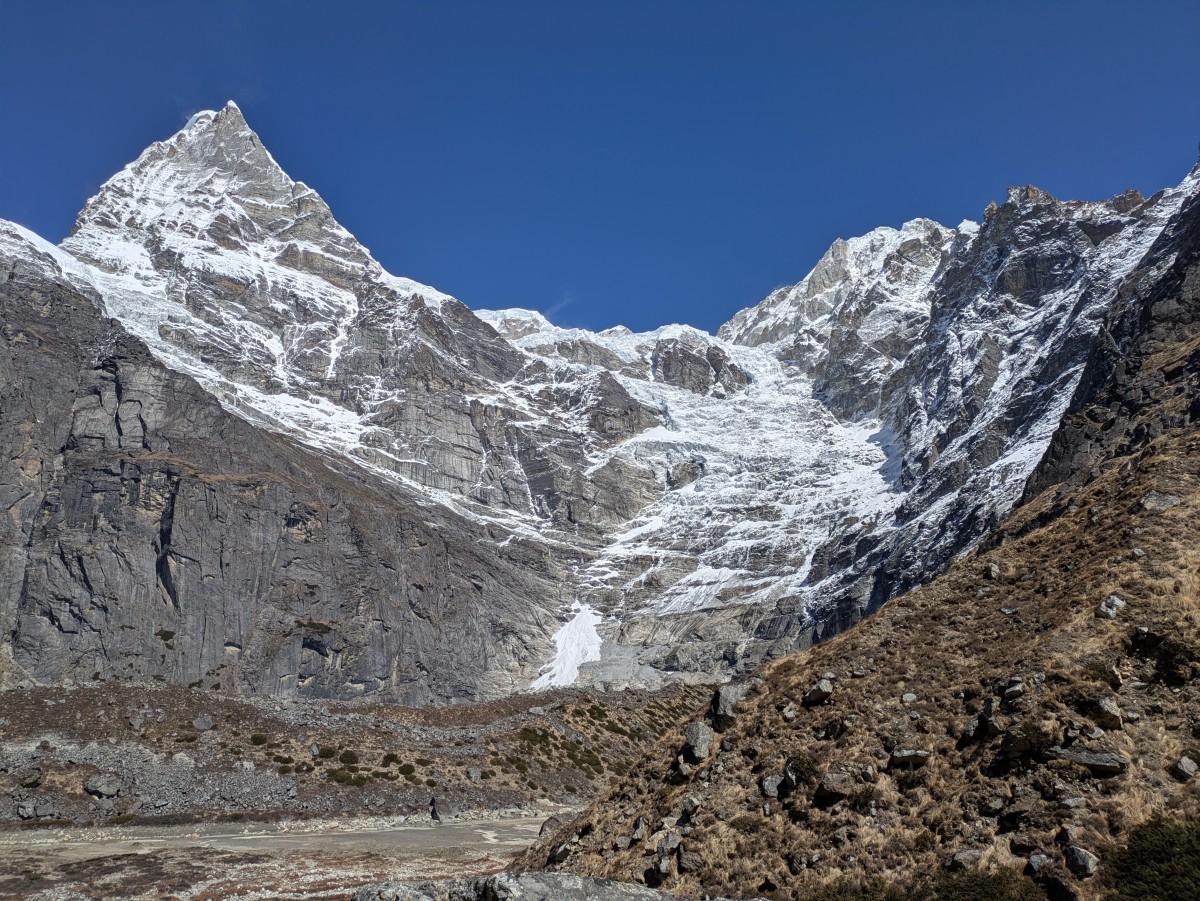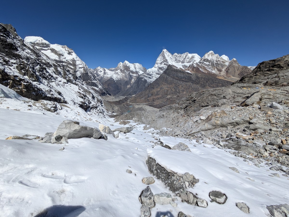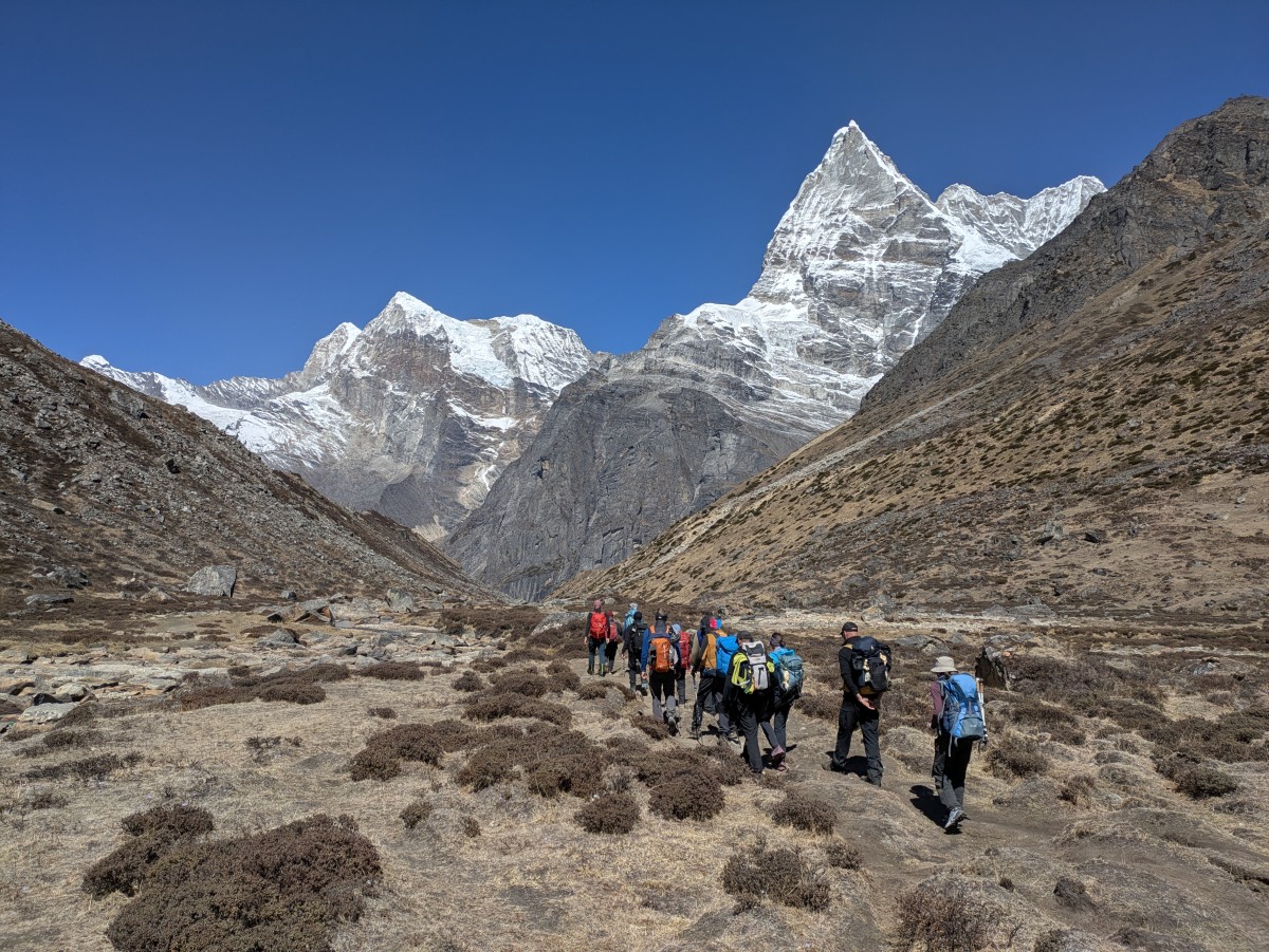Am nächsten Tag machen wir uns bei besten Bedingungen von Khare aus auf den Rückweg. Wie nach solchen Gipfeltagen üblich stellt sich bei mir