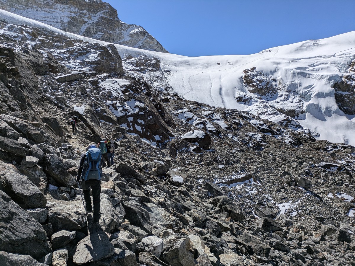 Am nächsten Tag: Akklimatisationstour entlang einer Moräne.