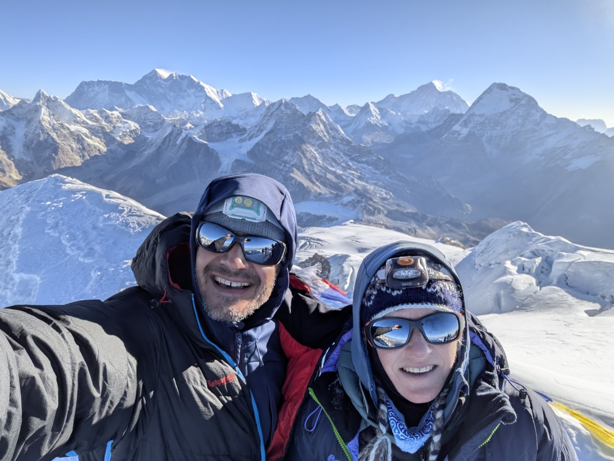 Wir überwinden das letzte etwas steilere Gratstück und stehen schließlich um halb sieben in der Früh am Gipfel des Mera Peak