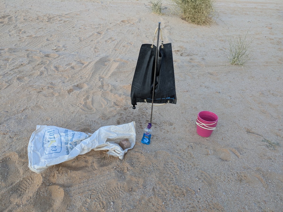 sei auf unsere Handwasch-Stelle hingewiesen. Wüste bedeutet zwar den Verzicht auf Dusche, aber zumindest die Hände können