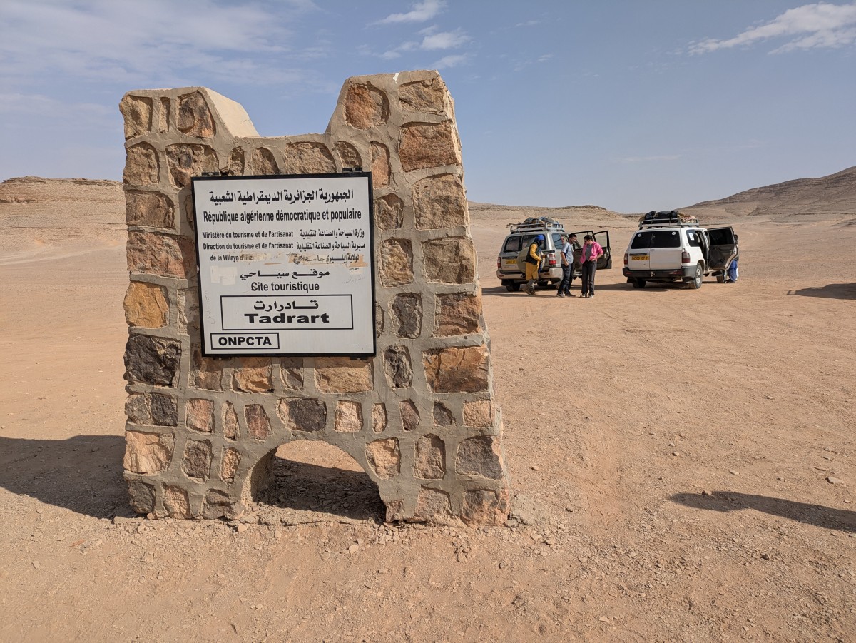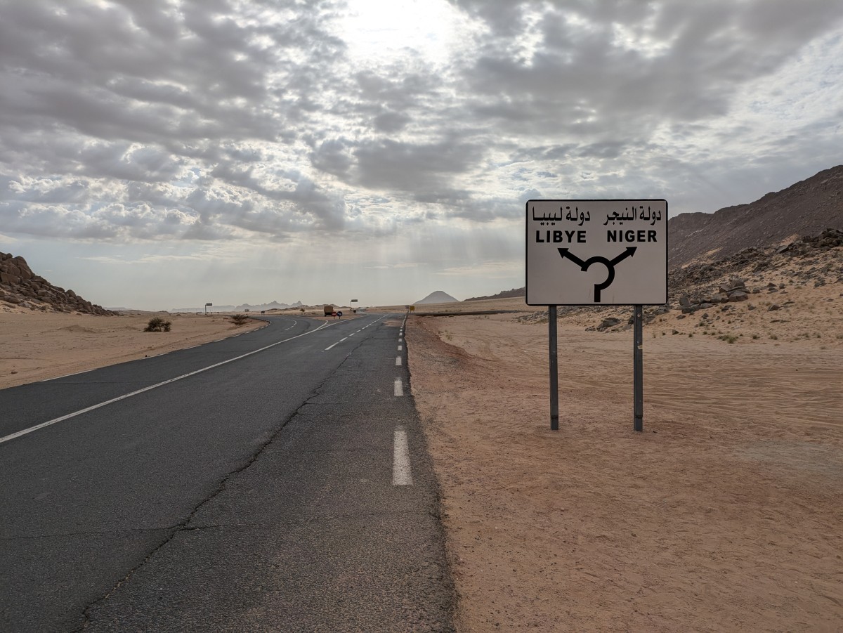 Wir fahren weiter; nach einer Weile kommen wir an diesem Wegweiser vorbei. Beide der angezeichneten Länder sind aus Algerien