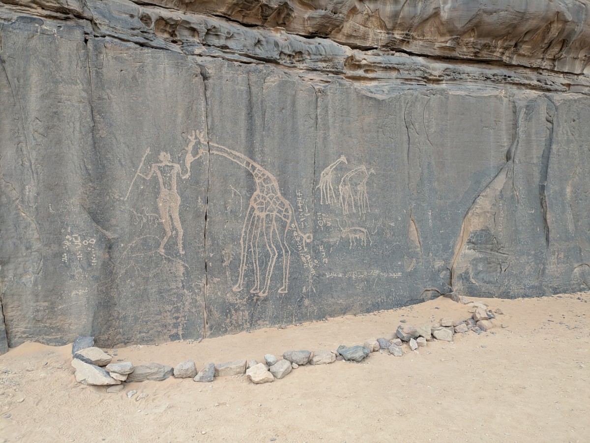 Auf dem Weiterweg kommen wir des öfteren an Felsritzungen vorbei. Hier gab es vor langer Zeit also Giraffen!