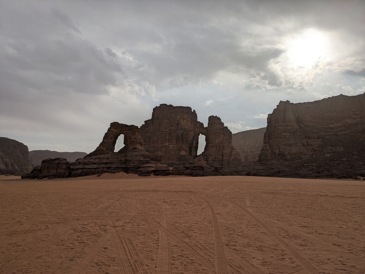 Schließlich langen wir bei der Kathedrale an. Der Doppelsteinbogen trägt den Namen Timzguida in Tamahak, der Sprache der Tuareg.