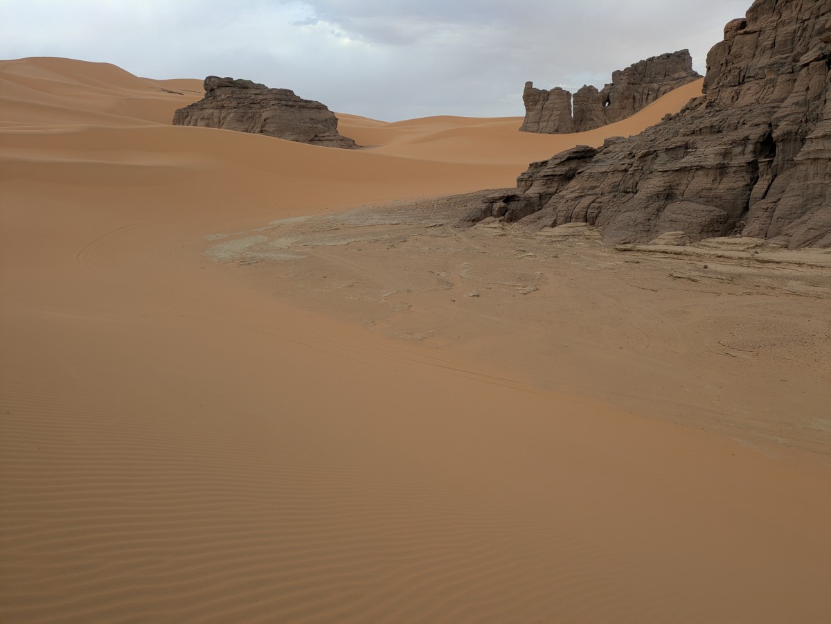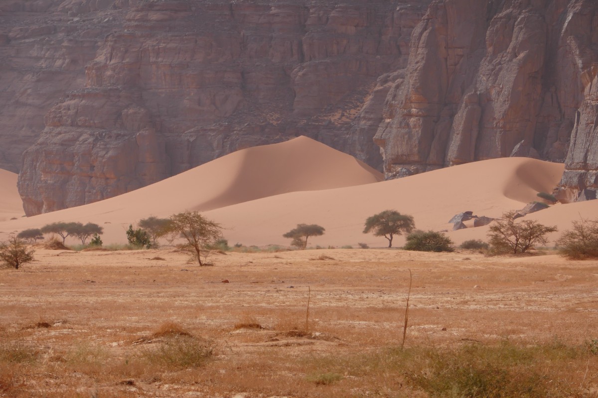 Lange Dünen begleiten uns auf dem Weg aus der Felslandschaft in die freie Ebene.