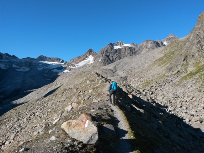 Der Absteig vom Fluchtkogel führt uns über das obere Guslarjoch hinunter Richtung Vernagthütte.
