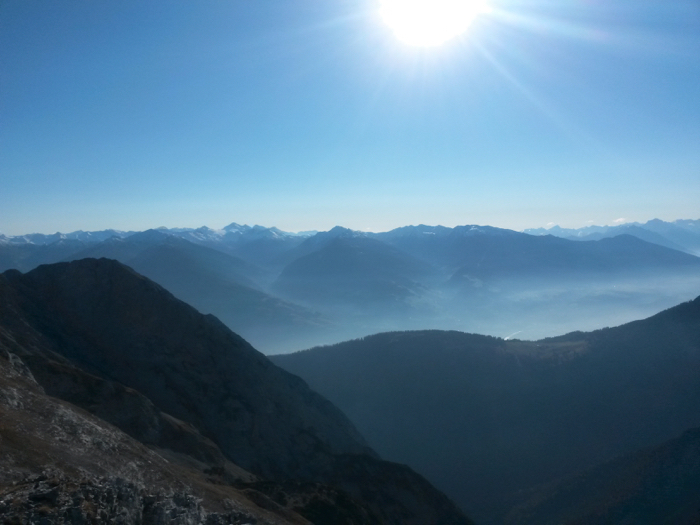 Nach einer weiteren kurzen Pause machen wir uns an den Abstieg durch die sonnige Südseite. Bevor wir die letzte Strecke