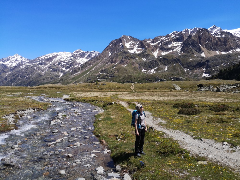 schöne alpine Umgebung belohnt, die wir unterhalb der Venezia-Spitzen durchqueren. Zufrieden kommen wir an der Martell-Hütte