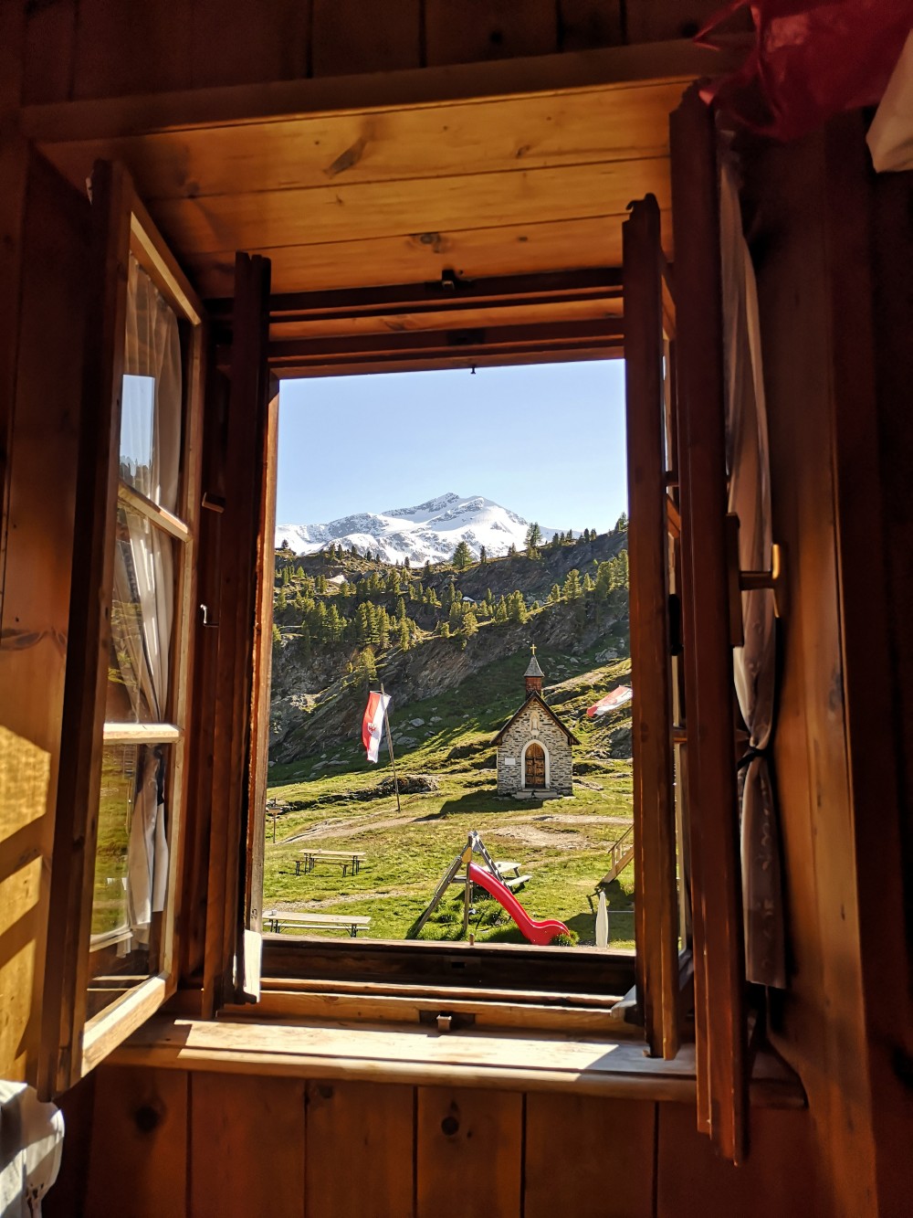 ...und genauso malerisch steht sie auch vor dem Fenster unseres Zimmers auf der Hütte.