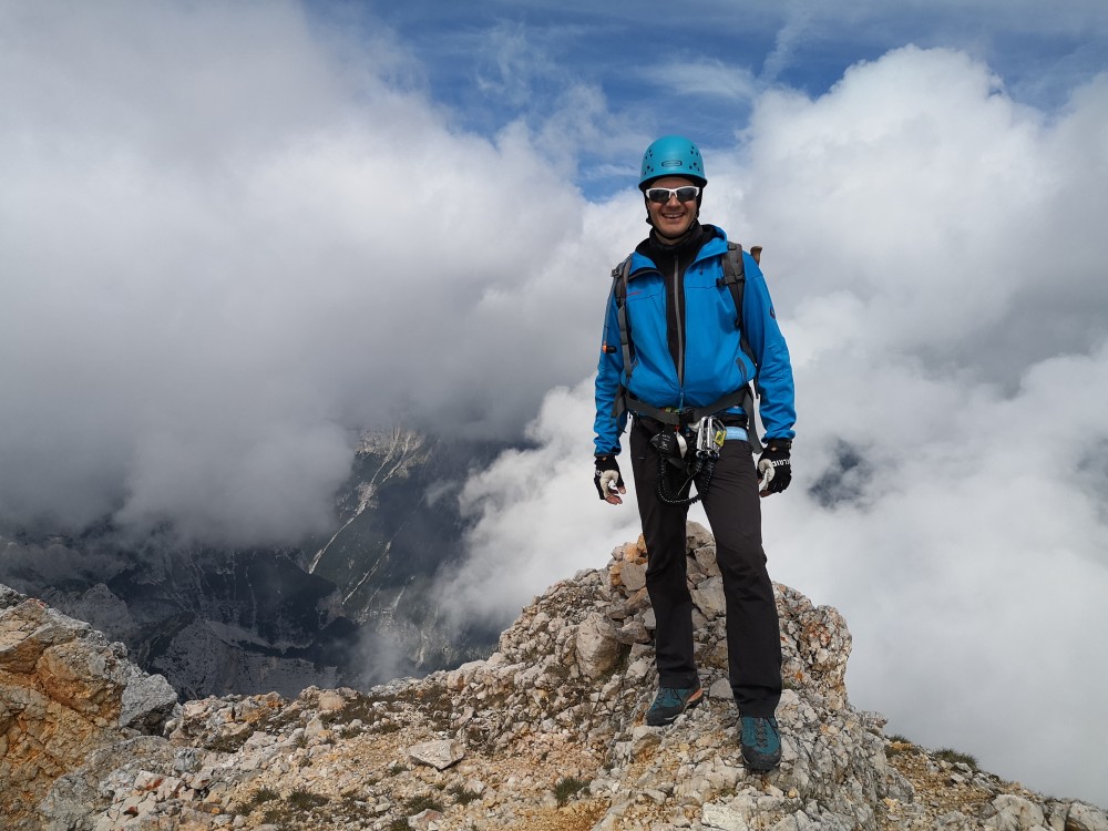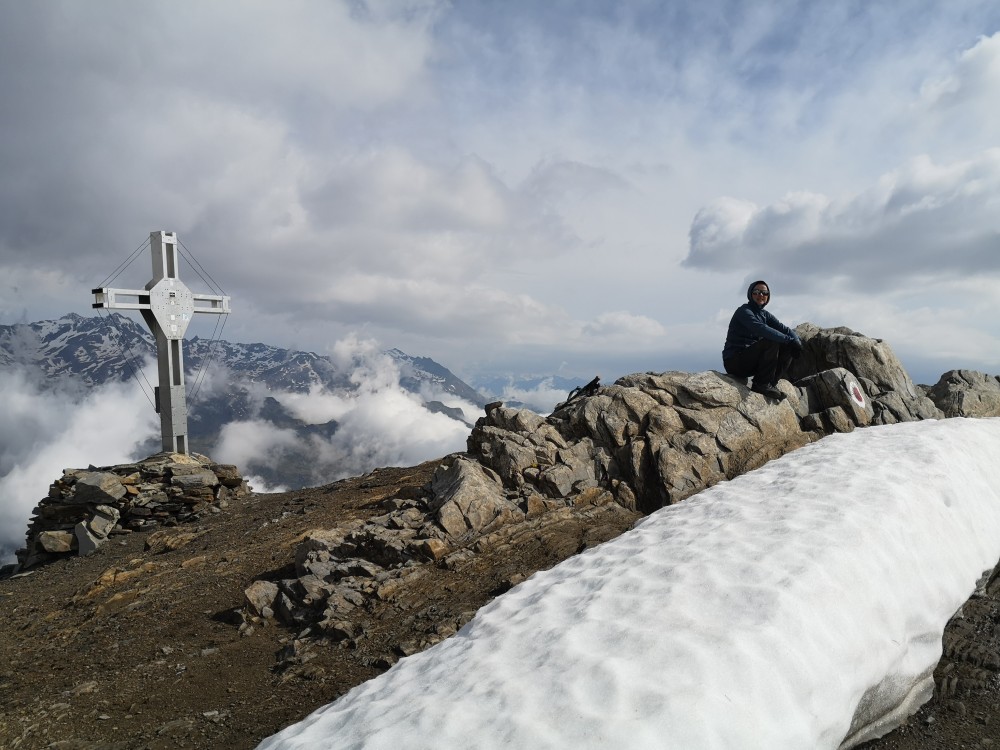 Am Gipfel angekommen erwartet uns ein kontinuierlicher Wechsel aus Wolken und Sonne - schlechte Zeiten für ein strahlendes