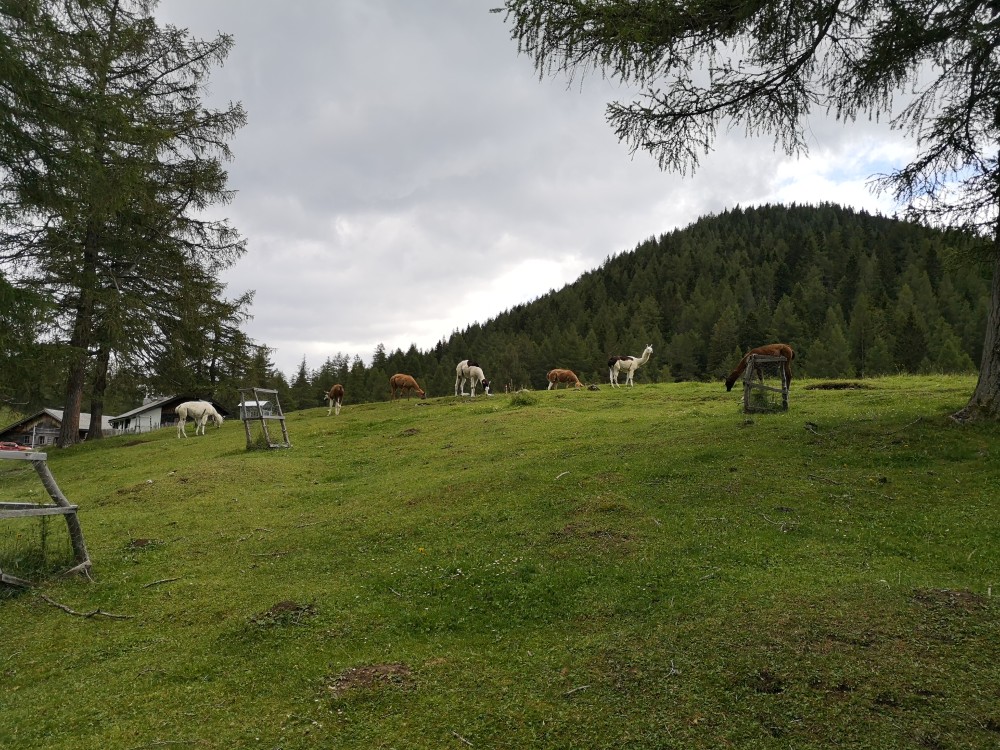 "Tiroler" ist hier vielleicht doch leicht irreführend. Eine Herde Lamas grast friedlich auf der Alm.