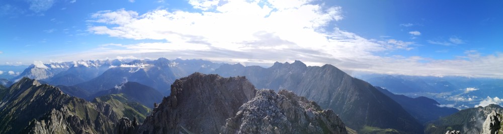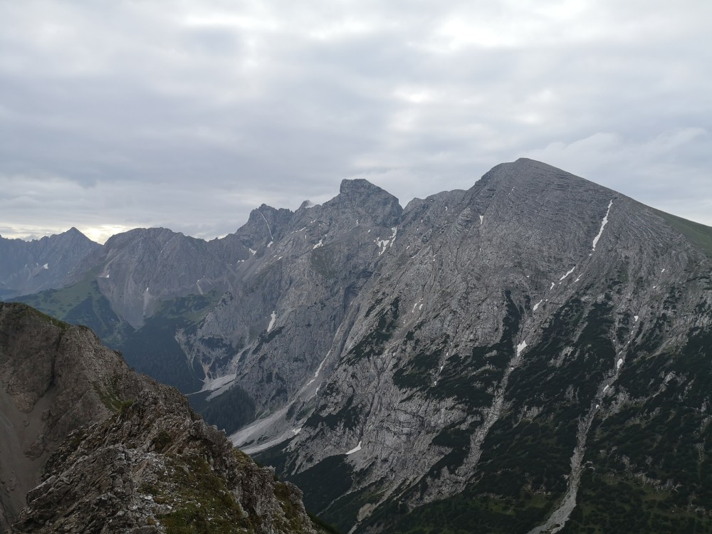 An der Westschulter der Gehrenspitze genießen wir noch einmal das Panorama mit Hoher Munde, Hochwanner und Schüsselkar