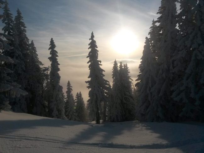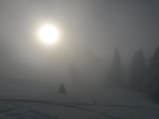 und Sonne vorgeführt. Der Weg zur Brünnsteinschanze ist gesäumt von vom Nebel