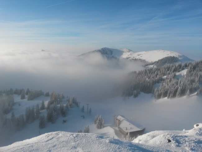 Knapp überhalb der Taubenstein-Bergstation ist es dann soweit - wir brechen durch die