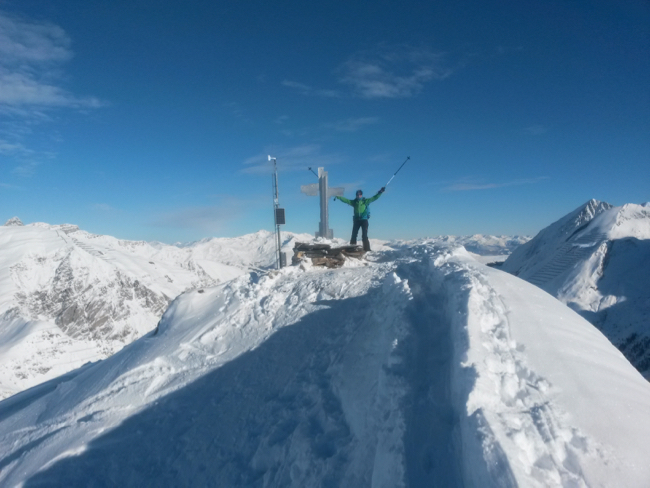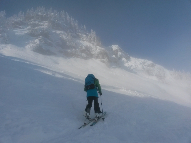 Einstieg in den Tourenwinter. Auch die Abfahrt über das Skigebiet ist nicht zu