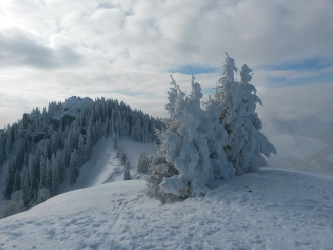 Schnee und Reif auf dem Taubenstein-Gipfel