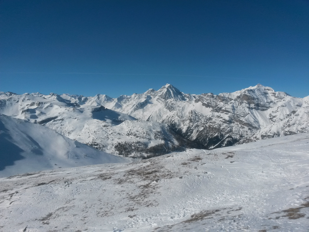 ungefährlich. So kommen wir jedoch relativ gut zum Joch hinunter, von dem aus die Piste dann weitläufig wieder ins
