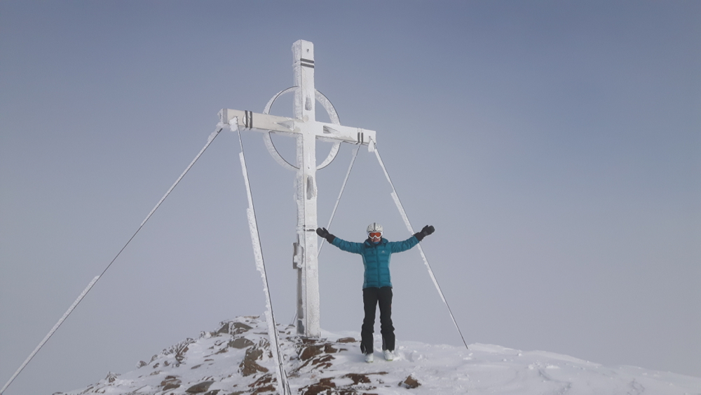Das Gipfelkreuz ist durch Reif und Anraum verziert.
