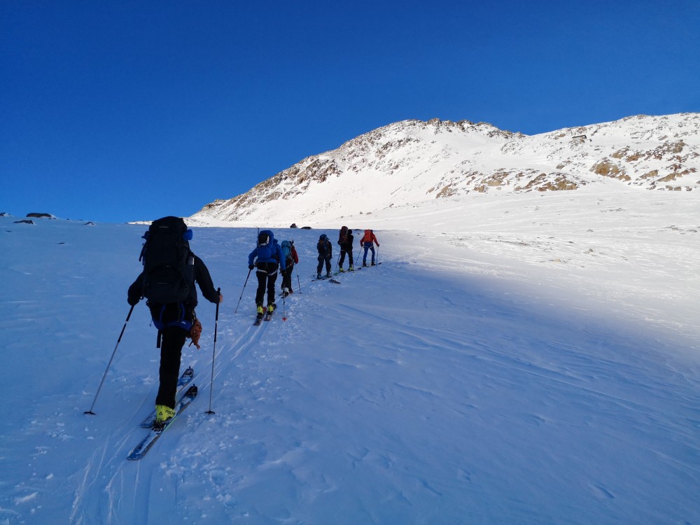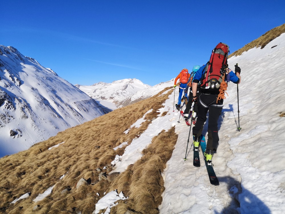 Ski in Richtung Martin-Busch-Hütte ansteigen.