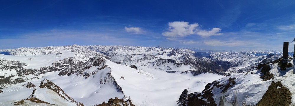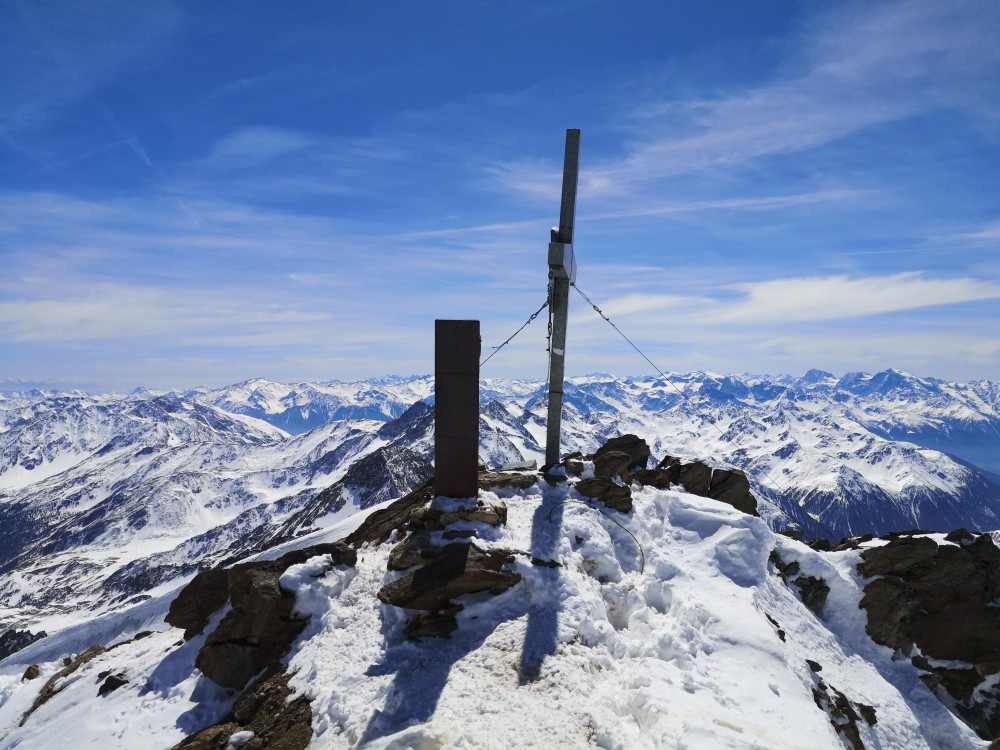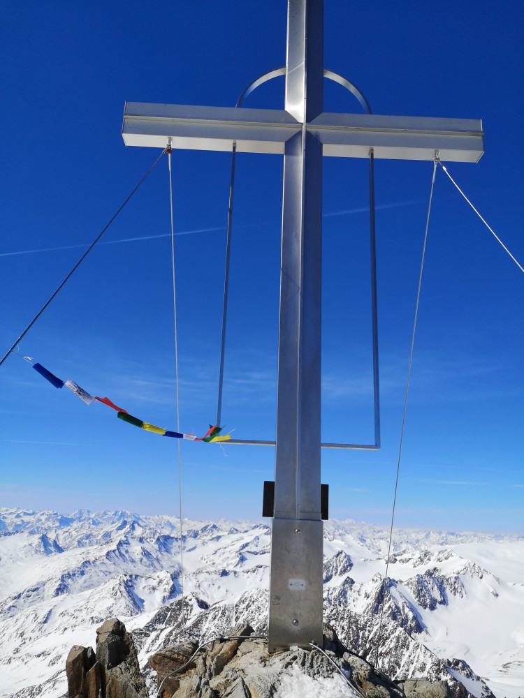Endlich sind wir am Kreuz angekommen - und damit stehen wir am zweithöchsten der Ötztaler Berge mit 3739 Metern Höhe.