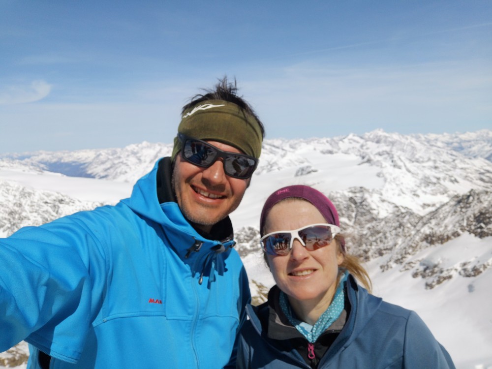 und teilweise herausfordernden aperen Übergängen. Wir sind hochzufrieden - insbesondere mit unseren beiden Bergführern Andreas und Peppi,