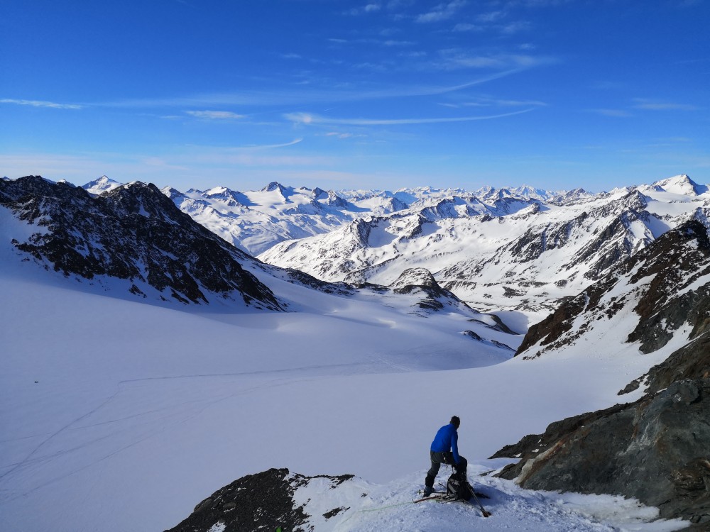 Hinteren Eis auf - denn von dort wäre der übliche Übergang zum Hintereisferner aufgrund der schwachen Schneelage nicht mehr möglich. Stattdessen