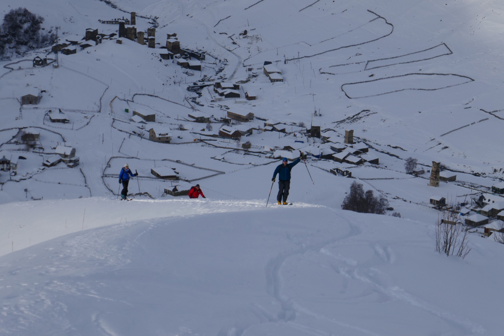 wir haben phantastische Touren im Pulverschnee in der wilden Umgebung Svanetiens im Gepäck,