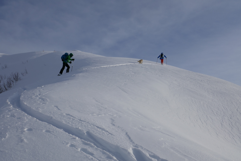 freuen uns auf die lange Abfahrt im Pulver - und werden nicht enttäuscht!