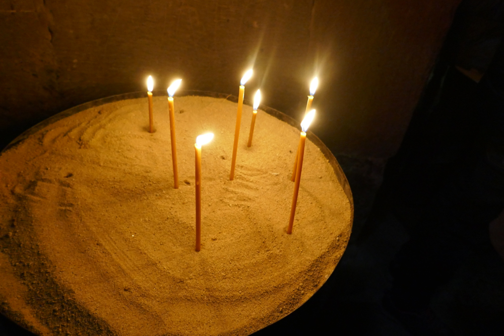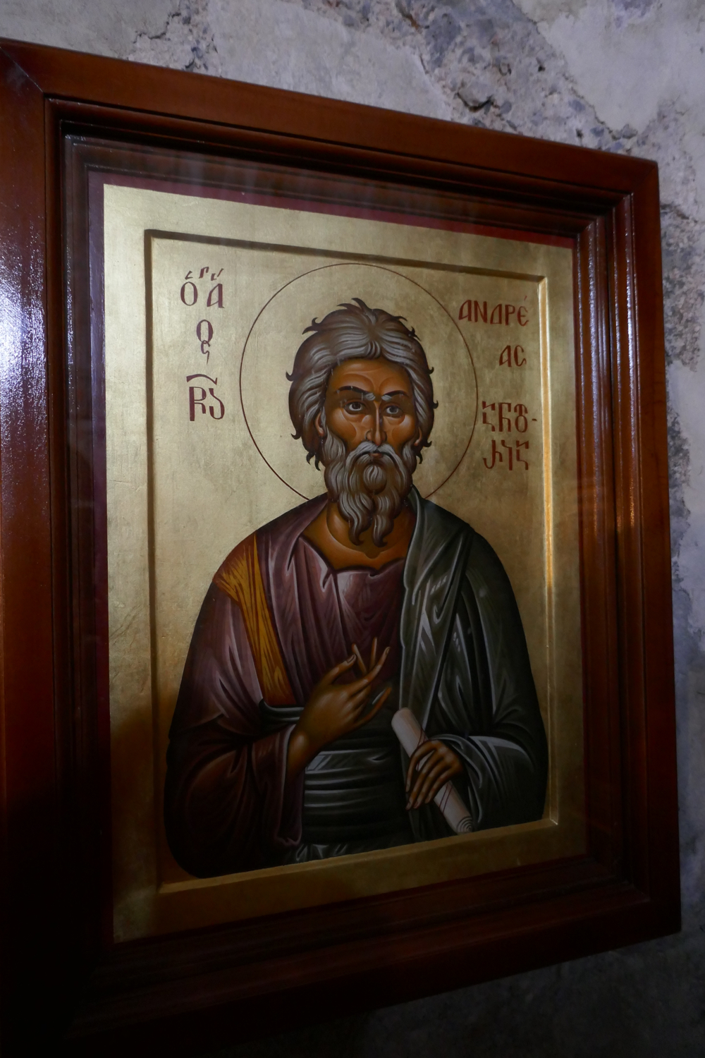 Das kleine Lamaria-Kloster mit dem von uns bestiegenen Lamaria Peak links neben dem Turm