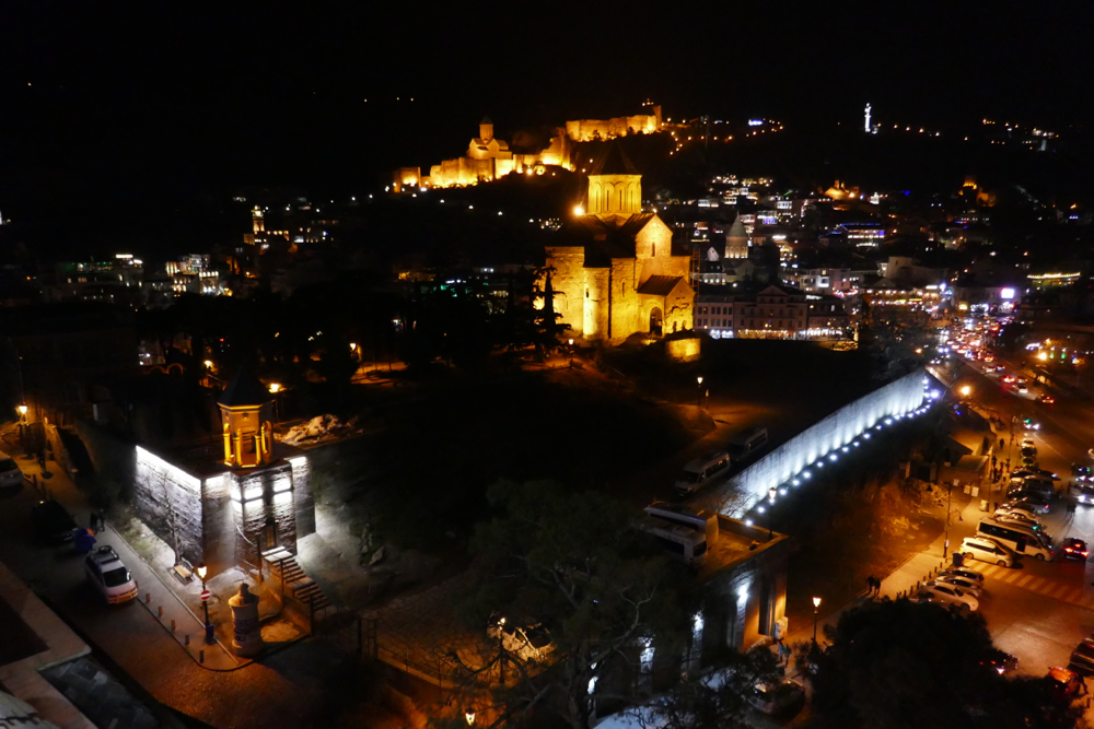 Schon am nächsten Abend sehen wir statt der beleuteten svanetischen Wehrtürme die beleuchtete Altstadt
