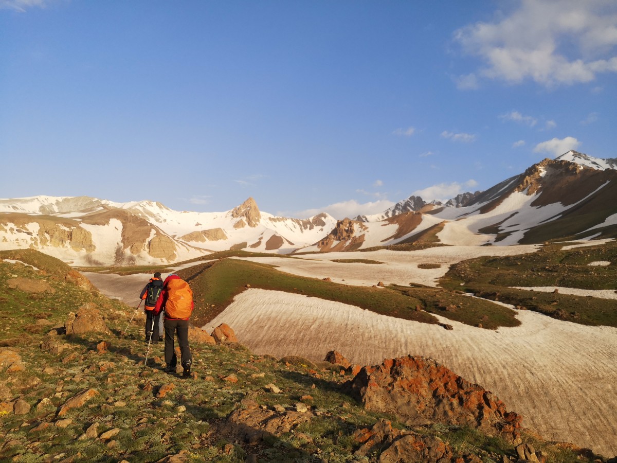enttäuscht. Am großen Hesarchal-Plateau erwartet uns erneut die Gipfelschau ringsum, und wir gehen beinahe schon beschwingt weiter.